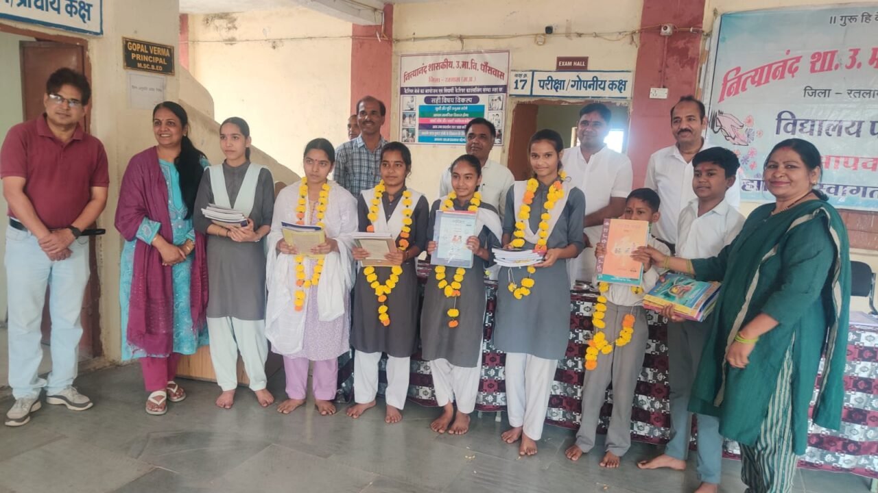 किस्मत न्यूज़ रतलाम.सर्वप्रथम मां सरस्वती के चित्र पर अतिथियों द्वारा माल्यार्पण कर एवं विद्यार्थियों को पुस्तक वितरण कर सभी छात्र-छात्राओं...