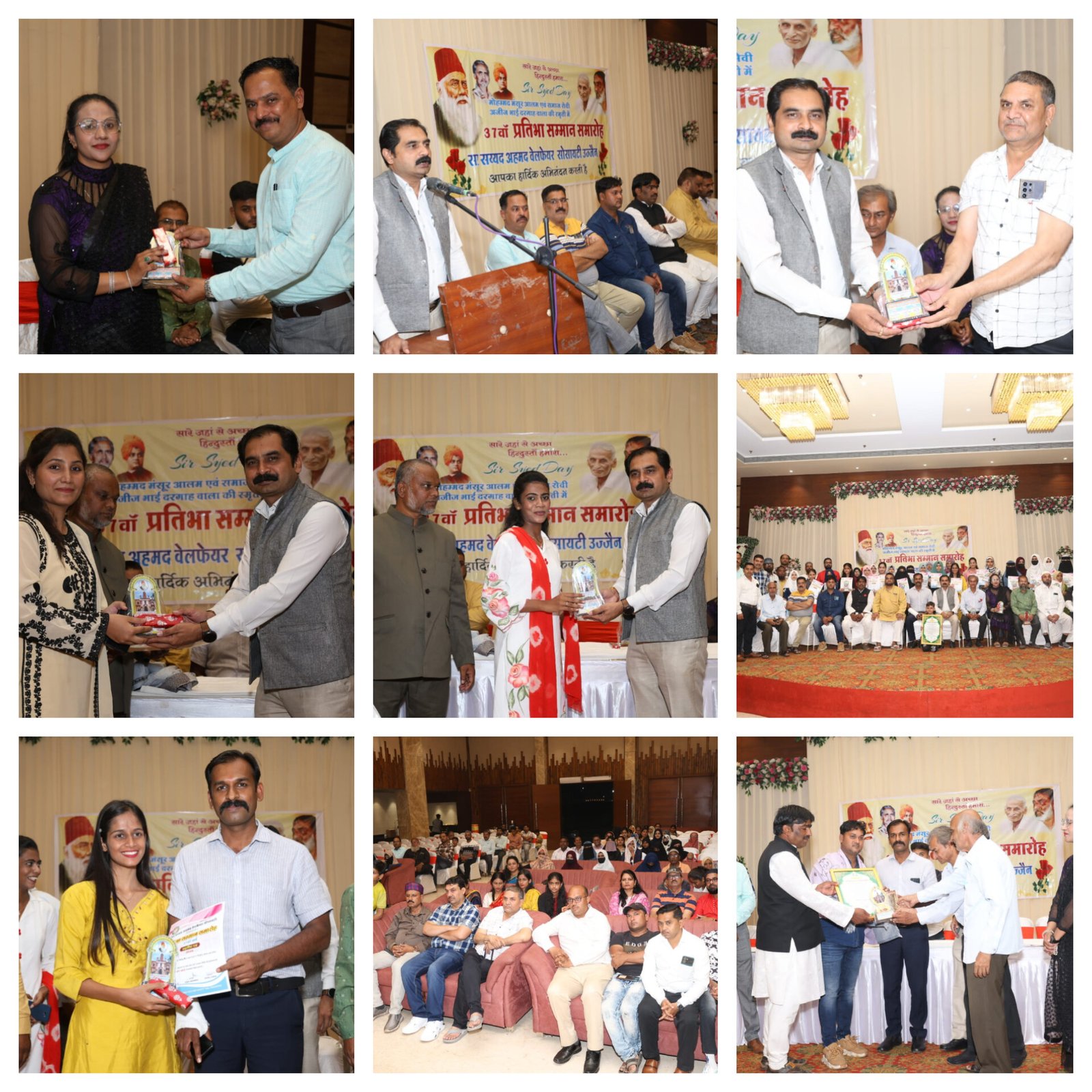 सोसाइटी द्वारा अलीगढ़ यूनिवर्सिटी के संस्थापक सर सैयद अहमद की 207वी जयंती पर प्रतिभा सम्मान समारोह संपन्न हुआ संस्था अध्यक्ष पंकज जयसवाल एवं उपसंयोजक सैयद उस्मान ने विस्तृत जानकारी देते बताया अब्दुल अजीज भाई दरगाह वाला एवं मोहम्मद मंसूर आलम की स्मृति मे 37 व प्रतिभा सम्मान समारोह होटल इंपिरियल के रॉयल हाल में आयोजित किया गया जिसमें 101 प्रतिभाशाली छात्र-छात्राओं एवं अन्य क्षेत्र की 7 प्रतिभाओं को महान शख्सियतो के नाम से अवार्ड प्रदान किए गए l सचिव धर्मेंद्र राठौर एवं उपसंयोजक हाजी असलम भाई दरगाह वाला ने बताया जानकारी देते हुए बताया जिले के 80% या उससे अधिक अंकों से उज्जैन101 प्रतिभाशाली छात्र- छात्राओं को इब्राहिम खान अवार्ड से सम्मानित किया गया l अन्य क्षेत्र की प्रतिभाओं में खेल के लिए गोल्ड मेडलिस्ट कल्याणी श्रीवास्तव को मदर टेरेसा , समाज सेवा के लिए नासिर मंसूरी को भगत सिंह अवॉर्ड, शिक्षा के लिए महिदपुर के शिक्षाविद मोहम्मद सलीम को डॉ. एपीजे अब्दुल कलाम अवॉर्ड , हाजी शेरू भाई को मौलाना अबुल कलाम आजाद अवार्ड , कर्तव्य निष्ठा के लिए कपिल भारद्वाज को पंडित मदन मोहन मालवीय अवार्ड, एन सी सी नेशनल अवार्ड विजेता मेहरान जाफरी को झांसी की रानी लक्ष्मीबाई अवार्ड से सम्मानित किया गया कार्यक्रम के अध्यक्षता जिला विधिक सहायता अधिकारी चंद्रेश मंडलोई ने करते हुए अपने उद्बोधन में सर सैयद अहमद वेलफेयर सोसायटी प्रतिभाशाली छात्र-छात्राओ एवं अन्य क्षेत्रों की प्रतिभाओं को सोसाइटी निरंतर 37 वर्षों से प्रोत्साहित करती आ रही है इसके लिए संस्था बधाई की पात्र है l विशेष अतिथि के तौर पर कराटे गोल्ड मेडलिस्ट ट्रेनर इंदौर शीनम खान. ,समाजसेवी हाजी इस्माइल खान भुरू भाई, रफी शोध संस्थान के डायरेक्टर डॉ. तेज कुमार मालवीय, प्रोफेसर सलीम नागोरी, गंगाधर महा, अबू बकर मंसूरी डॉ. शकील अंसारी ने भी छात्र-छात्राओं को सम्मानित किया किया l मुख्य अतिथि नितेश भार्गव ने समारोह को संबोधित करते हुए कहां नेक मकसद से किया गया छोटा कार्य भी महानता पा लेता है l बच्चों में से आगे चलकर देश का नाम गोरवान्वित करेंगे l इन्हीं बच्चों में से कल डॉक्टर, शिक्षक, खिलाड़ी साहित्यकार बनेंगे l कार्यक्रम में शहर के प्रबुद्ध नागरिक, मनोज अग्रवाल एडवोकेट इरफान राइन, साकिर शेख, मार्शल आर्ट अकादमी के डायरेक्टर सैयद जमीर अब्बास , कूडो प्रशिक्षक खुशी भाटी, इरशाद खान कॉन्टैक्टर, आजम खान, मध्य प्रदेश हज कमेटी के पूर्व सदस्य हाजी इकबाल हुसैन, राजा भाई विकार अहमद शिक्षाविद कमर अली, व्यापारी एसोसिएशन के अध्यक्ष सैयद फारूक, जाहिद नूर, समीर खान एडवोकेट, रेहान शफ़क़ वसीम खान, इरफान राइन नासिर हुसैन , फ़ैज़ जाफरी, अनवर नागौरी, सामाजिक कार्यकर्ता 