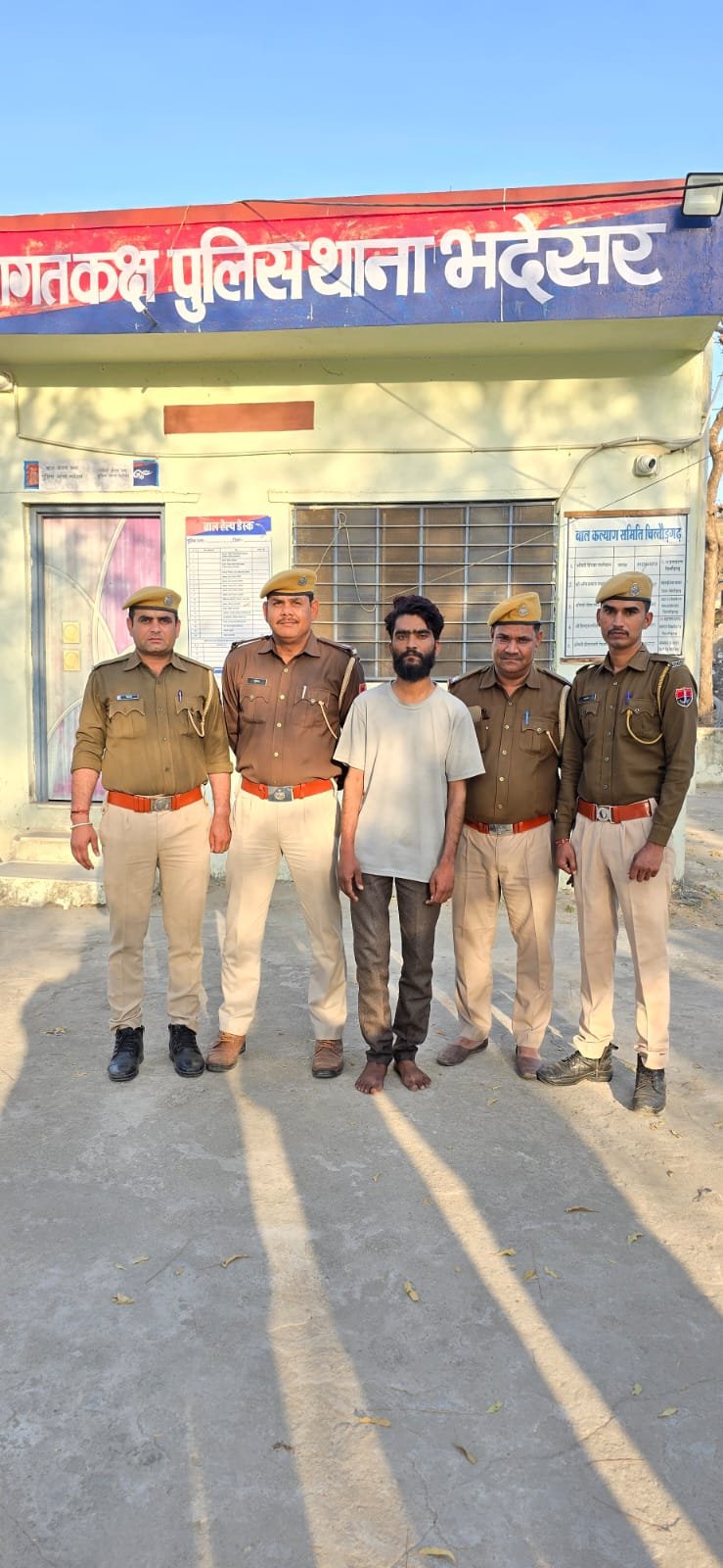 थानाधिकारी भदेसर धर्मराज मीना उपनिरीक्षक, एएसआई निहाल चन्द, सुभाष, गोपाल, सुनील, कानि. विकाश, विजय, रतनसिह, नरेन्द्र, झाबरमल, मुरलीधर व धर्मेंद्र।