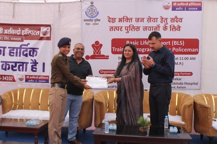 रतलाम पुलिस उप महानिरीक्षक रेंज श्री मनोज कुमार सिंह एवं पुलिस अधीक्षक रतलाम श्री अमित कुमार की पहल पर श्री अरबिंदो हॉस्पिटल की ओर से दिनांक 02.03.25 को पुलिस लाइन रतलाम में पुलिस अधिकारियों एवं कर्मचारियों के लिए बेसिक लाइफ सपोर्ट की ट्रेनिंग देने के उद्देश्य से एक कार्यशाला का आयोजन किया गया।