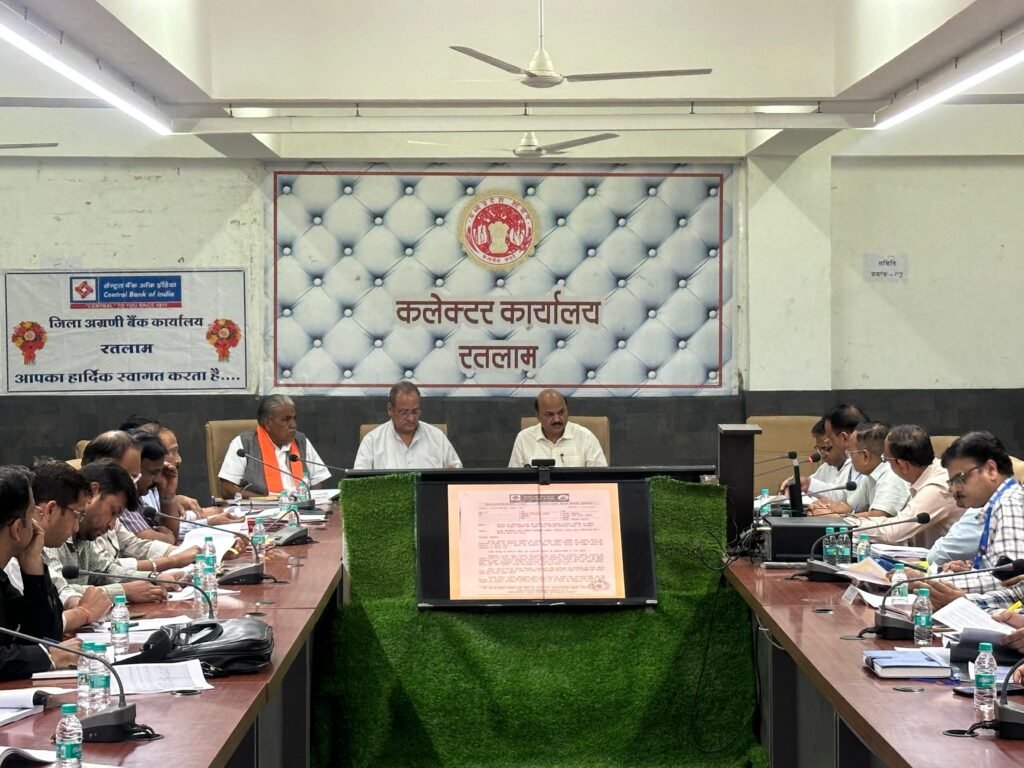 रतलाम उक्त बैठक की अध्यक्षता श्री राजेश बाथम कलेक्टर, रतलाम द्वारा की गई तथा रतलाम ग्रामीण विधायक श्री मथुरालाल डामर एवं जावरा विधायक डॉ. राजेन्द्र पाण्डेय की गरिमामयी उपस्थिति में संपन्न हुई। सर्वप्रथम अग्रणी जिला प्रबंधक मोहनलाल मीणा द्वारा उपस्थित समस्त अतिथियों का स्वागत किया गया तथा उक्त बैठक की जानकारी प्रदान की प्रदान की गई ।