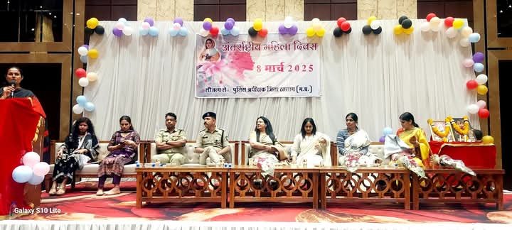रतलाम अंतर्राष्ट्रीय महिला दिवस के अवसर पर आज दिनांक 08.03.25 को रतलाम पुलिस अधीक्षक की पहल पर एक विशेष कार्यक्रम श्रीजी पैलेस में आयोजित किया गया, जिसमें महिला पुलिस अधिकारीयो एवं कर्मचारियों के समर्पण और कर्तव्यनिष्ठा की सराहना की गई। कार्यक्रम में पुलिस अधीक्षक श्री अमित कुमार अपनी पत्नी डॉ स्वर्णा सरस्वती, अतिरिक्त पुलिस अधीक्षक रतलाम श्री राकेश खाखा अपनी पत्नी श्री मति तबस्सुम खाखा के साथ सम्मिलित हुए। कार्यक्रम में डॉ स्मिता शर्मा ( ब्रेस्ट कैंसर स्पेशलिस्ट) एवं डॉ अर्चना शर्मा (ENT स्पेशलिस्ट) द्वारा विशेष अतिथि के रूप में सम्मिलित होकर महिला अधिकारियों एवं कर्मचारियों को स्वास्थ्य संबंधी जागरूकता प्रदान की गई।