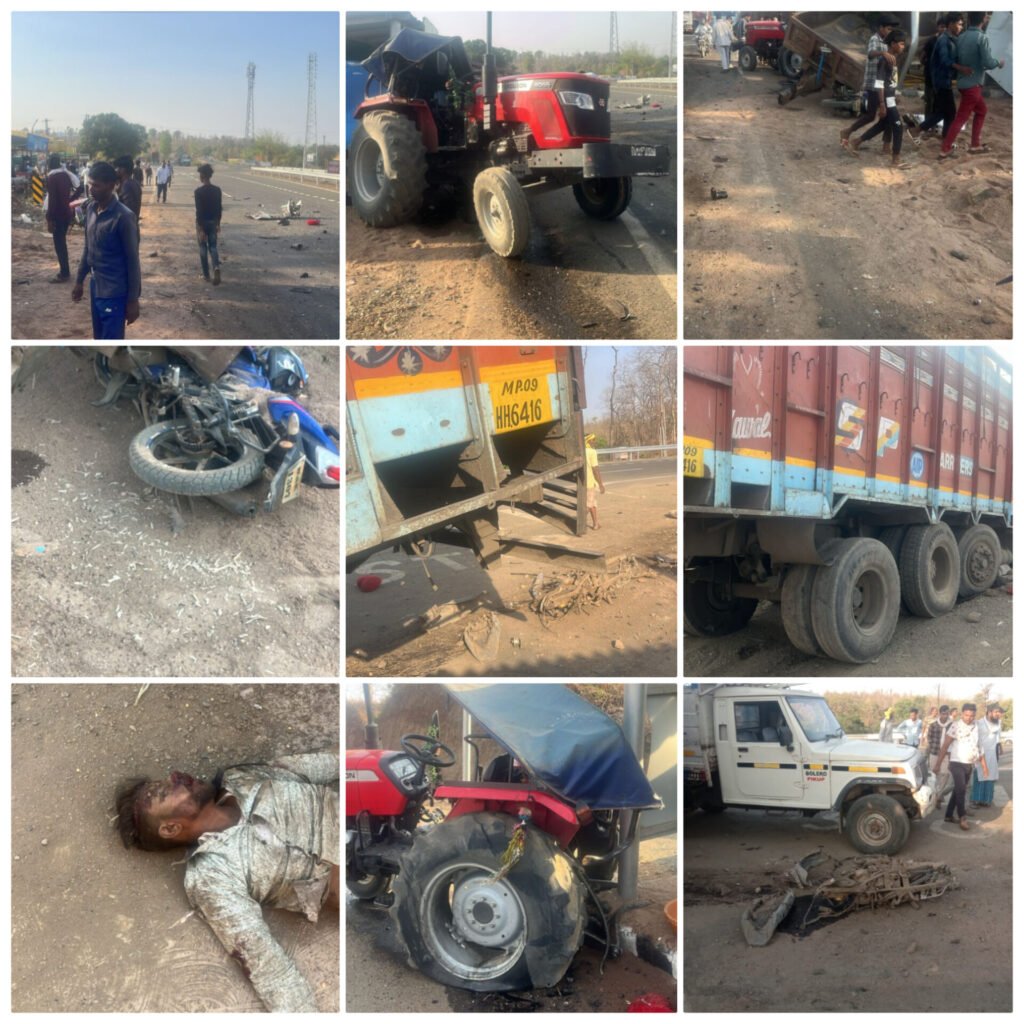 चिरा पाटला के पास बन्नू दाना जोड़ पर हाई स्कूल चिरा पटला के रास्ते पर आज लगभग 4:30 बजे बहुत ही खतरनाक एक्सीडेंट हुआ है एक ट्रक ने दो मोटरसाइकिल एक ट्रैक्टर एक पिकअप और प्रतीक्षालय को टक्कर मार के छाती ग्रस्त किया है इसमें दो लोगों को बहुत ही गंभीर चोटें आई है कमठा माल के बताया जा रहे हैं…अकरम खान पटेल – किस्मत न्यूज