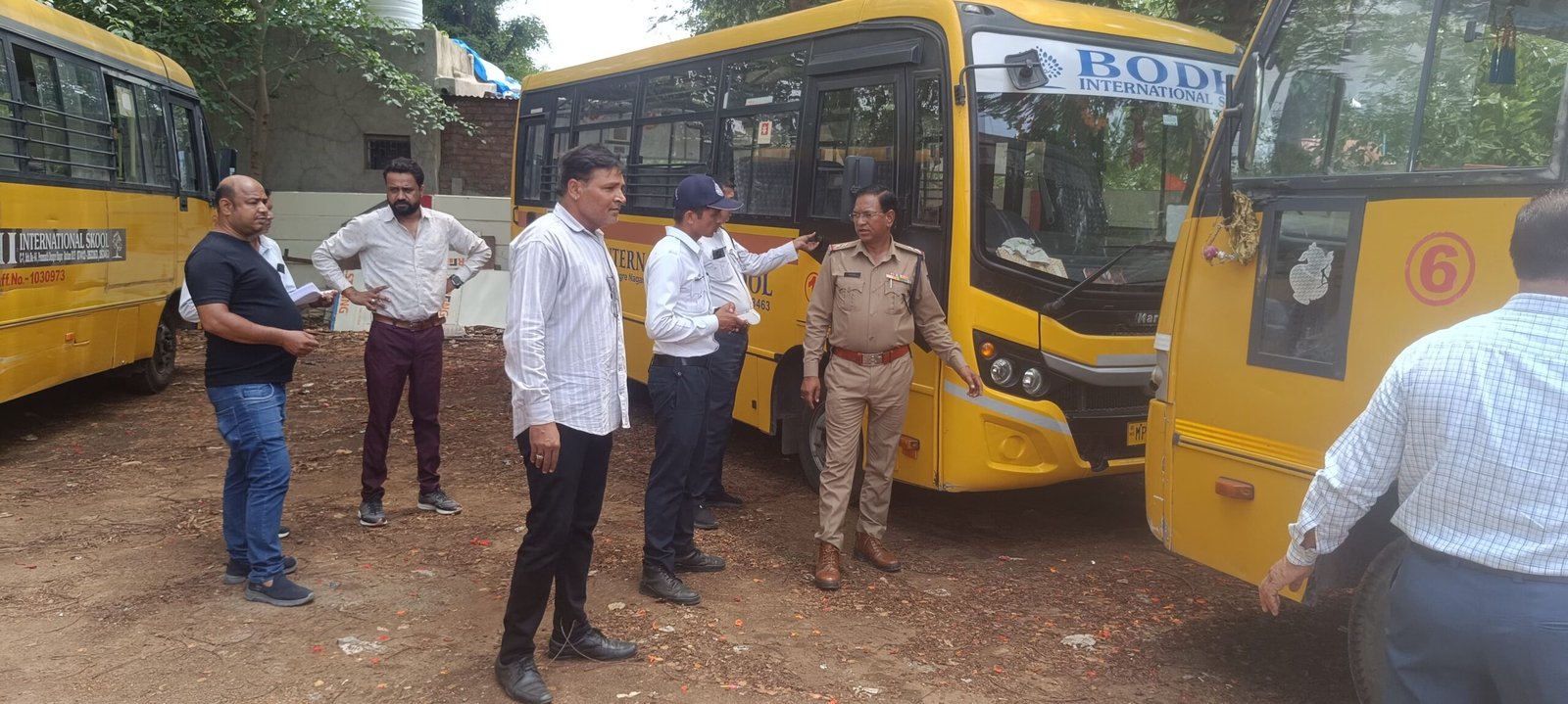 रतलाम पुलिस द्वारा स्कूल बसों का निरीक्षण जारी