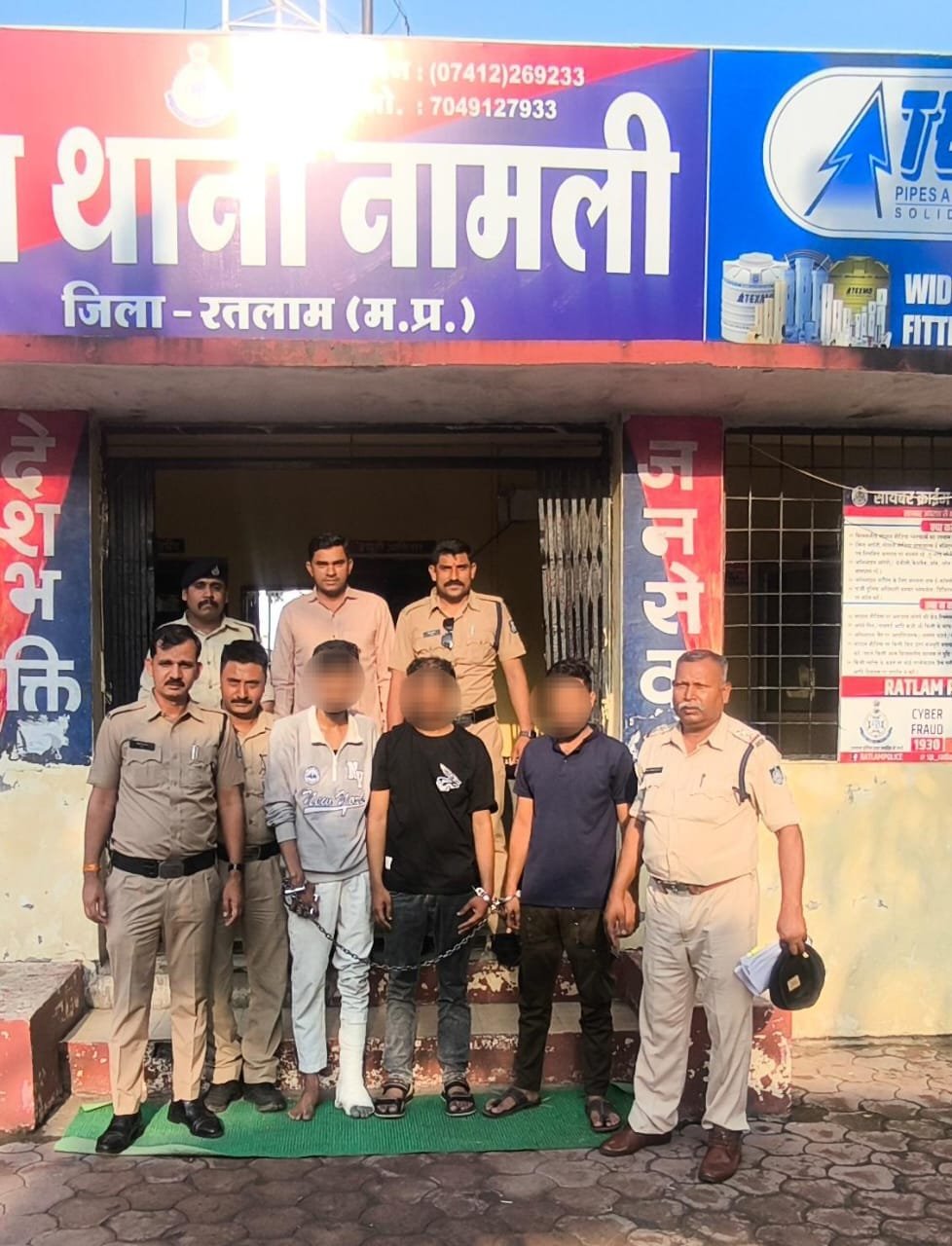 सराहनीय भूम निरीक्षक श्री पी.आर. डावरे थाना प्रभारी नामली, उनि. आरके चौहान, सउनि.संतोष अग्रिहोत्री,प्रआर 67 राहुल जाट, प्रआर 447 हिमांशु यादव, आर 177 बहादुरसिंह, आर. 556 कुलदीप व्यास, आर. 1037 शांतिलाल राठौर, आर. 512 लखनसिंह, प्रआर. 820 महेंद्र सिंह, सायबर सेल रतलाम से प्रआर. लक्ष्मीनारायण, प्रआर. मनमोहन शर्मा, आर. विपुल भावसार की सराहनीय भूमिका रही ।