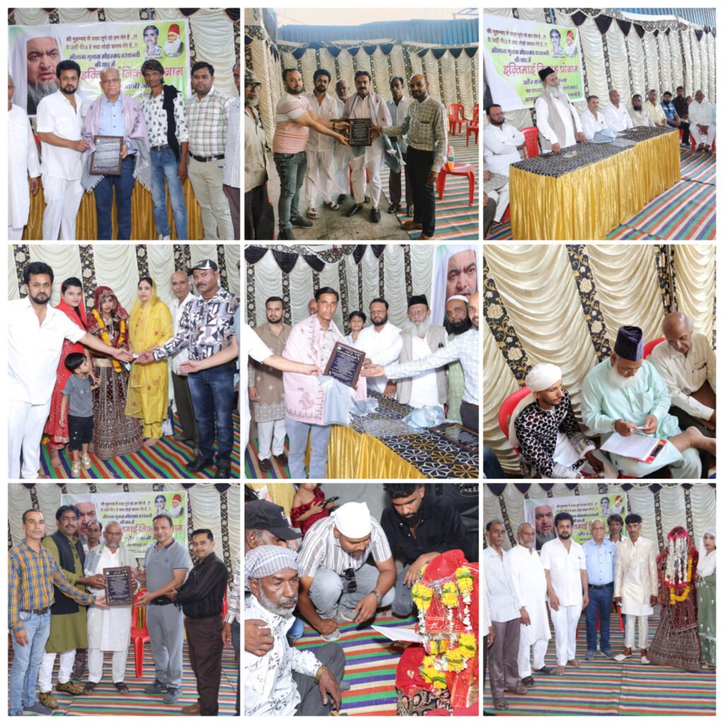 के संरक्षक सैयद अबीद अली मीर एवं मार्गदर्शक हाजी इस्माइल खान भुरू भाई ने विस्तृत जानकारी देते बताया आज संस्था द्वारा 26 व सामूहिक निकाह का प्रोग्राम विद्वान, समाज सुधारक मौलाना गुलाम मोहम्मद वस्तानवी की स्मृति में जामा मस्जिद स्कूल कम्युनिटी हॉल उज्जैन में मुकम्मल हुआ कार्यक्रम दो चरणों में हुआ l अध्यक्ष पंकज जयसवाल एवं उपसंयोजक हाजी इस्माइल भाई रंगवाला ने बताया कार्यक्रम मै अतिथि कुरैशी समाज के अध्यक्ष डॉ. निजाम हाशमी, समाजसेवी हाजी इस्माइल खान भुरू भाई मध्य प्रदेश हज कमेटी के पूर्व सदस्य हाजी इकबाल हुसैन , संस्था लक्ष्य के उपाध्यक्ष इरफान राइन., नागौरी हॉस्पिटल के सह प्रबंधक डॉ. सउद नागोरी सीरत उन नबी कमेटी के अध्यक्ष हाजी फहीम सिकंदर, डॉ एपीजे कलाम के अध्यक्ष एडवोकेट समीर खान ने संबोधित किया l पहले चरण में निकाह हुए दूसरे चरण में मौलाना गुलाम वस्तानवी अवार्ड से शहर की 11 शख्सियतों को सम्मानित किया गया l समाजसेवी हाजी शेरू भाई राइन, समाजसेवी आजम खान, डॉ शकील अंसारी, शिक्षाविद सादिक मंसूरी, साकिर शेख,,उस्मान गनी एडवोकेट, खालिद खादिम हुसैन, सैयद उस्मान हसन,,जाहिद नूर एडवोकेट, रिजवान रईसुल हसन जागीरदार, इरफान भाई अलमारी वालों को मौलाना मोहम्मद गुलाम वस्तानवी एक्सीलेंस अवार्ड से सम्मानित किया गया l निकाह मौलाना हबीब यार खान सा. ने मुकम्मल कराया l अध्यक्षता शहर काजी खालिक उर रहमान साहब ने की l बगैर दहेज के शादी करने वाले दूल्हो को संस्था की ओर से प्रोत्साहन राशि प्रदान की गई l आए हुए मेहमानों के लिए दावत-ए- ताम का इंतजाम किया गया कार्यक्रम में शहर के गणमान्य नागरिक साबिर हुसैन, जाकिर भाई रंग वाला,वकील मंसूरी, रेहान शफक,असलम खान दस्तक, शकील गुट्टी, रफीक खान , सामाजिक कार्यकर्ता रईस अहमद, वहीद भाई कोटा वाले,निराला खान वसीम चौधरी,शरीफ खान आदि उपस्थित थे संचालन रिजवान रॉयल ने किया आभार मार्गदर्शक इकबाल उस्मानी ने माना जानकारी उपरोक्त जानकारी सहसचिव जमीर अब्बास एवं संयुक्त सचिव डॉ. आमिर खान ने दी