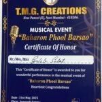 *गुलाब सलाट एक्शन एक्टर को टी.एम.जी. क्रिएशन न्यु मुम्बई म्यूजीकल इवेंट से एक डांस परफॉरमेंस से मीला गोल्ड मेडल और सर्टिफिकेट*