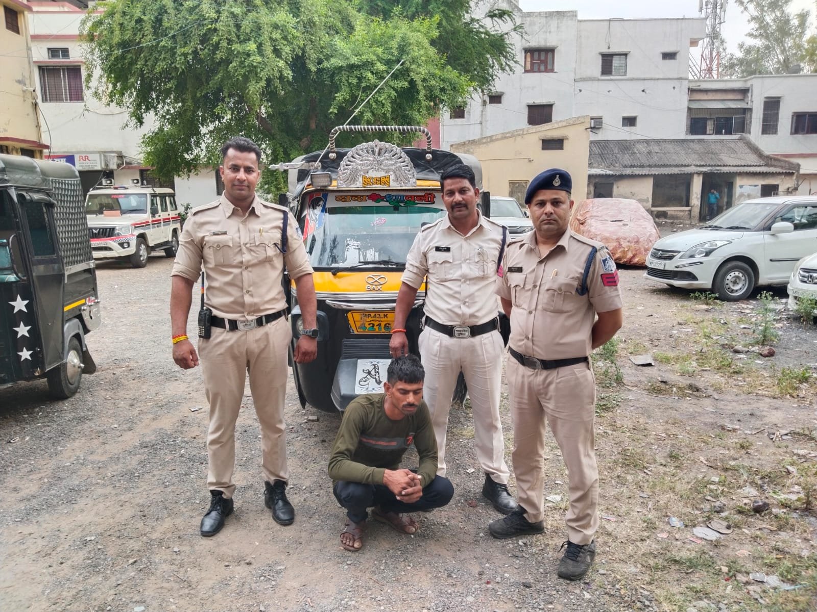 *पुलिस कारवाई का विवरण–* पुलिस अधीक्षक श्री अमित कुमार के निर्देशन एवं अतिरिक्त पुलिस अधीक्षक श्री राकेश खाखा एवं नगर पुलिस अधीक्षक श्री सत्येंद्र घनघोरिया के मार्गदर्शन में थाना प्रभारी स्टेशन रोड निरीक्षक स्वराज डाबी के नेतृत्व में थाना स्टेशन रोड की टीम गठित की गई। प्रकरण की विवेचना के दौरान पुलिस टीम के द्वारा मुखबिर सूचना के आधार पर सालाखेडी से उंकाला रोड पर विस्तारा पार्क के पास से चोरी गया उक्त ऑटो रिक्शा आरोपी मजहर अब्बास के कब्जे से जप्त कर आरोपी को गिरफ्तार किया गया।