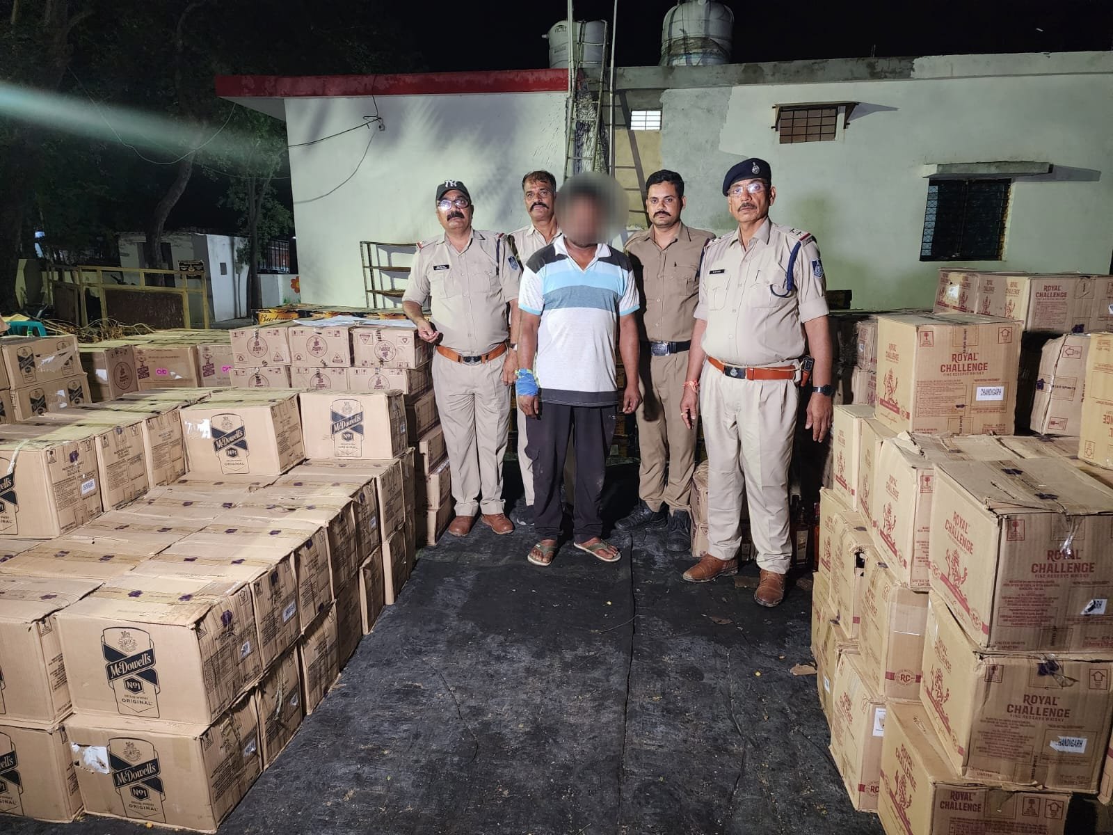 *जप्त मश्रुका -*. 1. 200 पेटी बडवाइजर बियर शराब 2. 100 पेटी रायल चैलेंज शराब , 3. 100 मैकडावेल शराब, 4. 100 पेटी रायल स्टेज शराब , 5. एक कण्टेनर