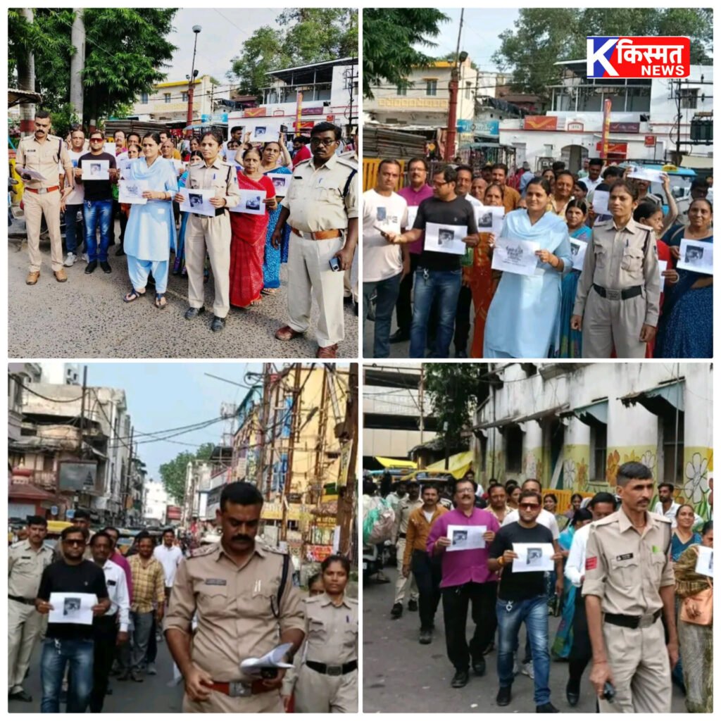 उज्जैन में थाना खाराकुंआ पुलिस ने नशा मुक्ति अभियान के तहत एक रैली निकाली, जिसमें पुलिसकर्मियों और क्षेत्र के निवासियों ने नशीली दवाओं के खिलाफ संदेश दिया। 🏃♂️👮♂️💪 – किस्मत न्यूज