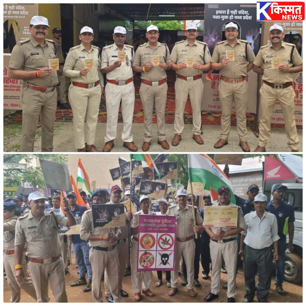 नीमच नारकोटिक्स विंग द्वारा नशे से दूरी, है जरूरी अभियान की शुरुआत गांव से लेकर शहर तक नशे से दूर रहने के लिए जागरूकता फैलाई जा रही है। 🚭💊👮 – किस्मत न्यूज