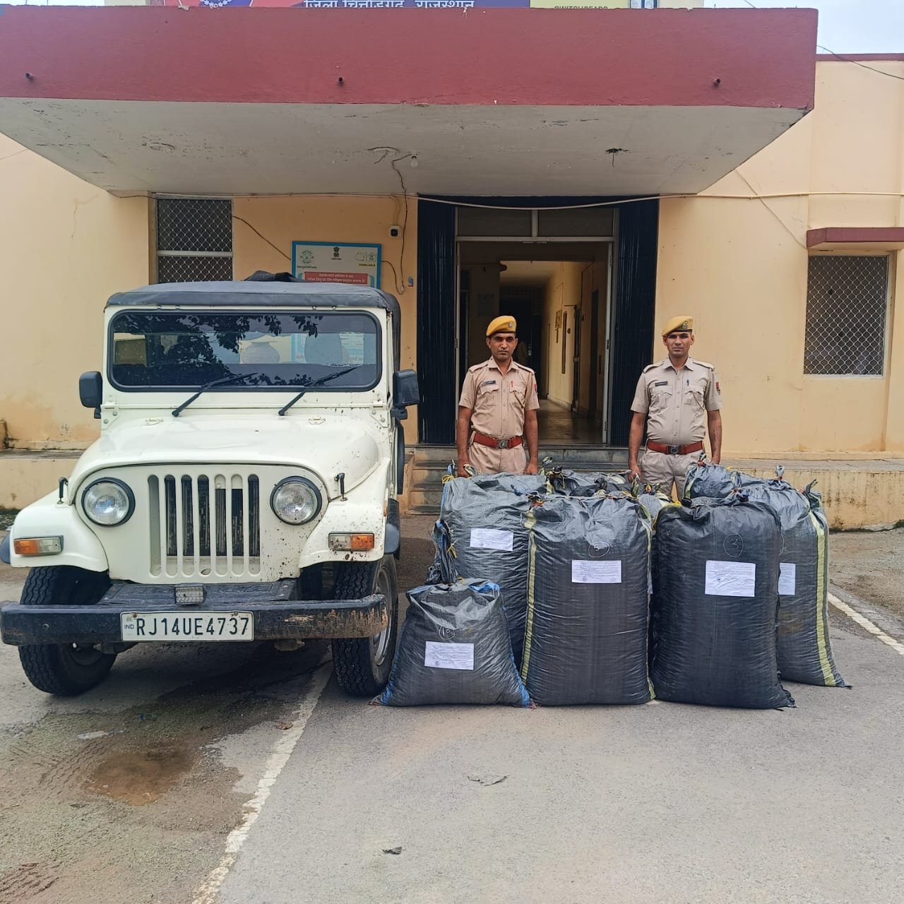 जिला पुलिस अधीक्षक श्री सुधीर जोशी ने बताया कि जिले में अवैध मादक पदार्थों की तस्करी की रोकथाम व धरपकड़ हेतु समस्त थानाधिकारियों को विशेष दिशा निर्देश दिए गए। इसी क्रम में एएसपी रावतभाटा भगवत सिंह व डीएसपी बेगूं अंजलि सिंह के निर्देशन में थानाधिकारी पारसोली शिवराज राव ऊनि के नेतृत्व में एएसआई भैरुलाल, देवीलाल, हैड कानि. चांदमल, कानि. मनोज, रतनसिंह, प्रितम, जितेन्द्र, गिरधारी व शीशराम द्वारा थाना क्षेत्राधिकार के गांव रतनपुरा के पास में आकस्मिक नाकाबंदी की गई। नाकाबंदी के दौरान राजगढ की तरफ से दो अज्ञात व्यक्ति एक महिन्द्रा थार जीप लेकर आये जिनको रुकवाने पर जीप को देवीपुरा कंजर बस्ती की तरफ भगा ले गए जिनका पीछा किया गया तो थार जीप को खेतो के कच्चे रास्ते पर लावारिश अवस्था में छोडकर फरार हो गए। जिनका तलाश के बावजूद कोई पता नही चला। थार जीप की तलाशी ली गई तो जीप में 10 कट्टे मादक पदार्थ अफीम डोडाचूरा से भरे हुए पाये गए। सभी कट्टो का वजन किया गया तो कुल वजन 214.88 किलोग्राम हुआ। मादक पदार्थ की तस्करी करने वाले अज्ञात आरोपियों के विरुद्ध एनडीपीएस एक्ट के अन्तर्गत प्रकरण दर्ज कर अफीम डोडाचूरा एवं थार जीप को जब्त किया गया।