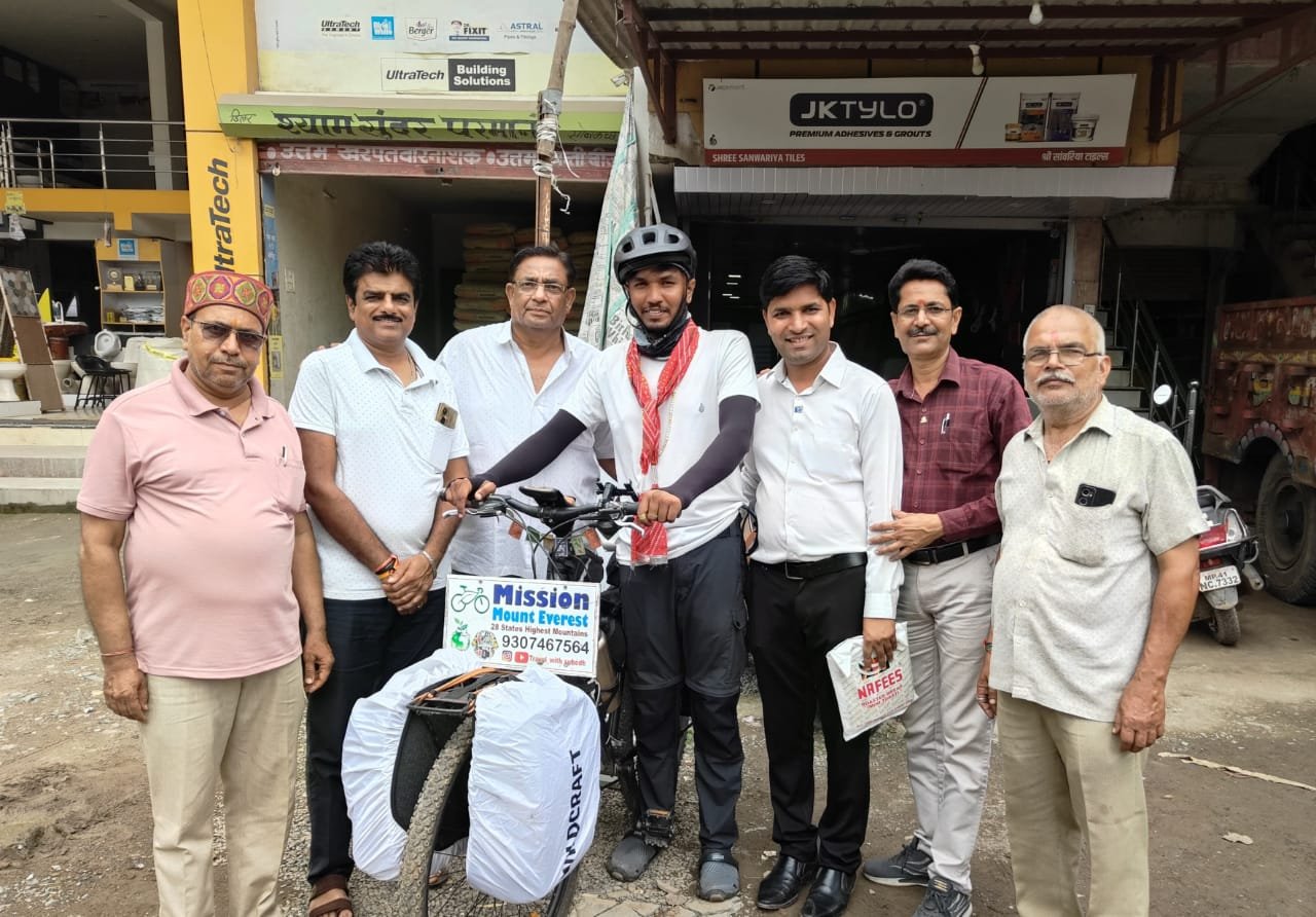 *सेई रायगढ़ महाराष्ट्र में एक किसान परिवार में जन्में 26 वर्षीय युवक सुबोध विजय अपनी थीम “शक्ति संकल्प और सफर” लिए समाज, अपने राष्ट्र और पर्यावरण जन चेतना के लिए दिल में जुनून लेकर राष्ट्रव्यापी यात्रा के लिए साइकिल से निकले है, जो देश के 28 राज्यों के सैकड़ों नगरों में भ्रमण करते हुए पर्यावरण का अलख जगा रहे हैं वे मंगलवार को अपनी यात्रा के दौरान भोपाल जाते वक्त सोनकच्छ पहुंचे जहां रोटरी क्लब सोनकच्छ द्वारा सचिव महेश चन्द्र राठौर के निवास पर उनका स्वागत किया गया। जहां श्री सुबोध विजय ने बताया कि वह अभी तक37000 किलो मीटर साइकिल यात्रा कर चुके है और लगभग 30000 से अधिक पौधे लगा चुके हैं उन्होंने बताया कि वो जहां भी जाते है वहां स्थानीय लोगों को और विधार्थियों को पौधारोपण के लिए प्रेरित करते है। सुबोध विजय अपनी यात्रा में लगभग 1लाख किलोमीटर साइकिल चलाएंगे और 1लाख पौधों को रोपित करेंगे। उसके पश्चात विश्व की सबसे ऊंची छोटी एवरेस्ट पर चढ़कर भारत का झंडा फहराएंगे। स्वागत अवसर पर क्लब अध्यक्ष दिनेश राठौर, सहायक मंडलाध्यक्ष दिनेश कारपेंटर, सचिव महेश चन्द्र राठौर, पूर्व अध्यक्ष मोहन सिंह बघेल, कमल नागर, ईश्वर सिंह जाधव उपस्थित थे*