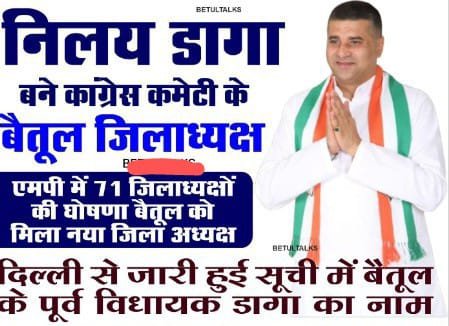 *निलय डागा बने जिला कांग्रेस कमेटी बैतूल के अध्यक्ष* अकरम खान पटेल 6 months ago 😊 Please Share This News 😊 बैतूल जिला कांग्रेस कमेटी अध्यक्ष निलय डागा को बनाया गया। आप पूर्व में बैतूल से विधायक भी रह चुके हैं। पूरे बैतूल जिले की जनता है उच्च नेतृत्व का आभार मानकर खुशी जाहिर की। व्हाट्सप्प आइकान को दबा कर इस खबर को शेयर जरूर करें Continue Reading Previous बैतूल। अटल सेना के प्रेरणास्त्रोत, भारत रत्न और पूर्व प्रधानमंत्री अटल बिहारी वाजपेयी की पुण्यतिथि अटल सेना द्वारा रामनगर में मनाईNext केन्द्रीय जेल अधीक्षक मनोज कुमार साहू द्वारा बताया गया कि आज दिनांक 15.08.2025 को केन्द्रीय जेल उज्जैन में आजीवन की सजा भुगत रहे बंदियों में से जिनका आचरण अच्छा है एवं 14 वर्ष की सजा भुगत ली है, उनकों शासन निर्देशानुसार निर्धारित जुर्माना राशि जमा करवाने पर रिहा किया गया। स्वतंत्र और सच्ची पत्रकारिता के लिए ज़रूरी है कि वो कॉरपोरेट और राजनैतिक नियंत्रण से मुक्त हो। ऐसा तभी संभव है जब जनता आगे आए और सहयोग करे Donate Now More Stories जबलपुर.*हमने चाहा था कि वो उम्र भर साथ चले, वो मिला भी तो बस रास्ता बदलने के लिए* *मशहूर शायर ताहिर फ़राज़ की याद में मुशायरा* *तालिब हुसैन* 7 hours ago रतलाम.जनसुनवाई में 97 आवेदन पर हुई सुनवाई Riport manohar malviya। 7 hours ago महिदपुर रोड में मुनिराज श्री का मंगलमय प्रवेशश्रद्धा व उल्लास से हुई भावपूर्ण आगवानी. रिपोर्ट मनोहर मालवीय। 7 hours ago [responsive-slider id=1466]