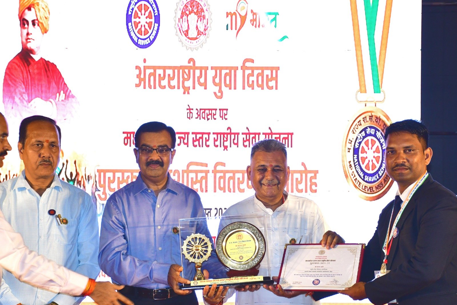 बैतूल। उच्च शिक्षा विभाग के अंतर्गत मध्यप्रदेश राज्य स्तर राष्ट्रीय सेवा योजना पुरस्कार वितरण समारोह ज्ञान विज्ञान भवन बरकतउल्ला विश्वविद्यालय भोपाल में संपन्न हुआ।