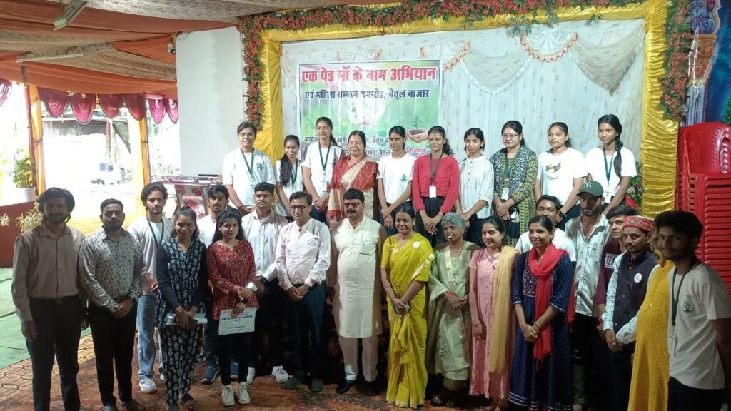 बैतूल। युवा कार्यक्रम एवं खेल मंत्रालय भारत सरकार मेरा युवा भारत बैतूल से संबद्ध रक्तदान समिति हेल्पिंग मिशन संस्था, ग्रीन आर्मी युवा मंडल के सहयोग से एक पेड़ मां के नाम अभियान व नारी शक्ति से सम्मान कार्यक्रम का आयोजन किया गया