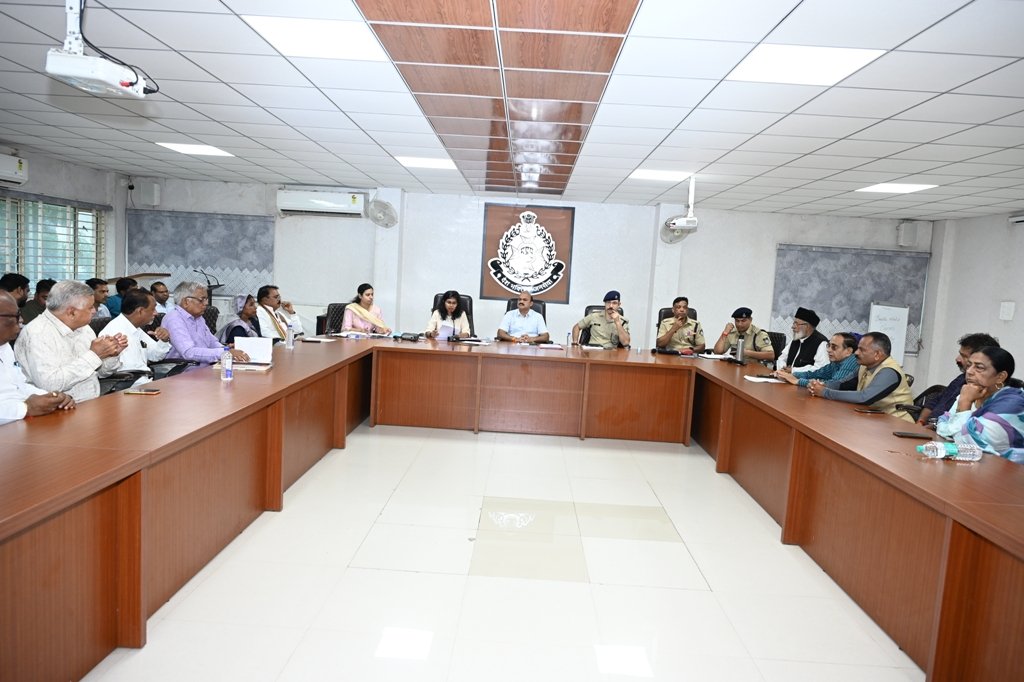 रतलाम 23 अगस्त 2025/जिला स्तरीय शांति समिति की बैठक आज शनिवार को नवीन पुलिस अधीक्षक कार्यालय सभाकक्ष में कलेक्टर श्री राजेश बाथम की अध्यक्षता में संपन्न हुई। – किस्मत न्यूज
