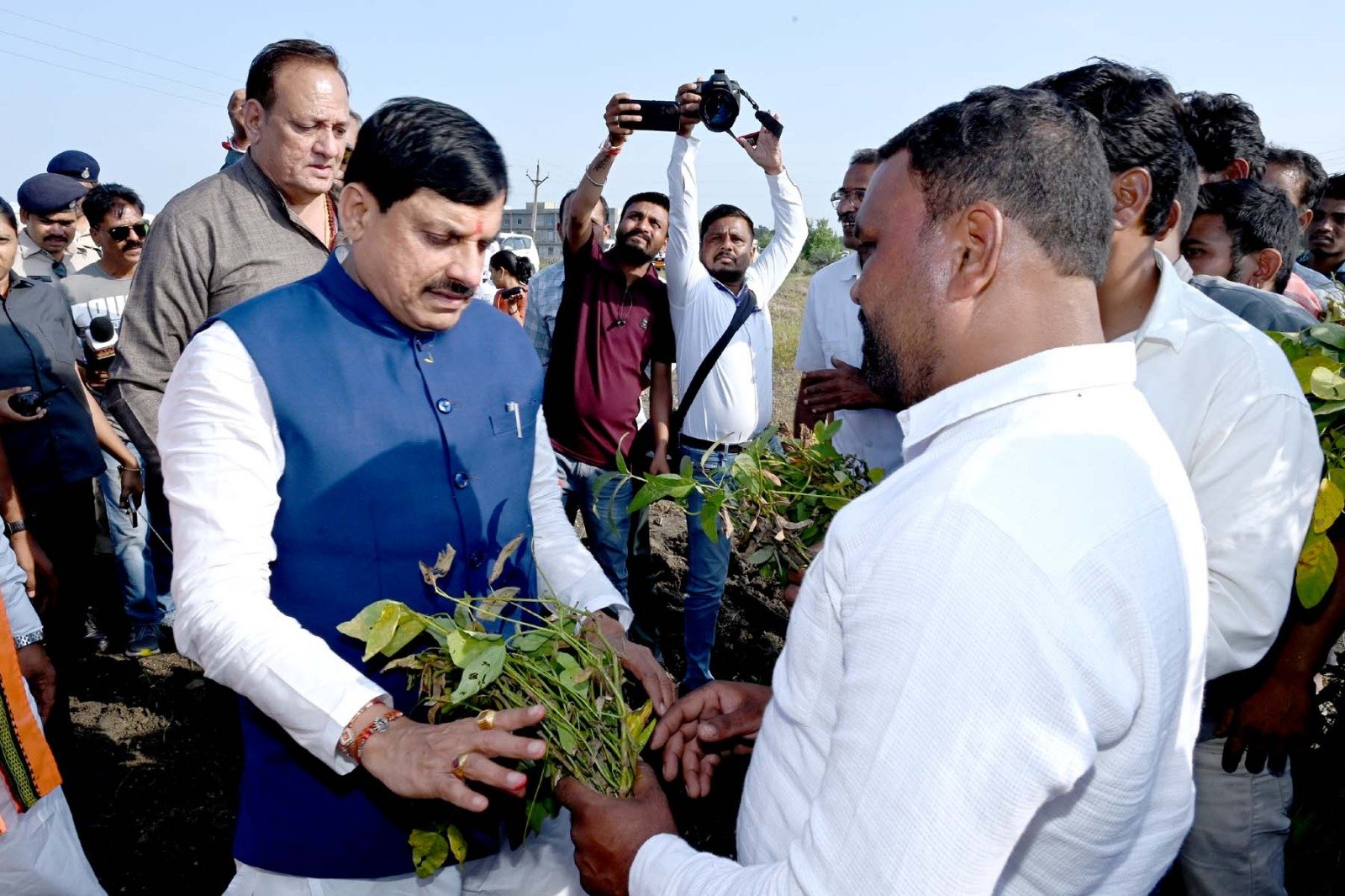 हम आपका साथ में है, चिंता मत करजो। मुख्यमंत्री डॉ. यादव ने करिया गाँव में किसान राधेश्याम पाटीदार को ढांढस बँधाते हुए यह बात कही। मुख्यमंत्री ने राधे श्याम पाटीदार सहित अन्य किसानों के खेत में जाकर प्रभावित फसलों का मुआयना किया और कहा कि मुसीबत की इस घड़ी में सरकार किसानों के साथ में हैं और सरकार से हर संभव मदद दी जाएगी।