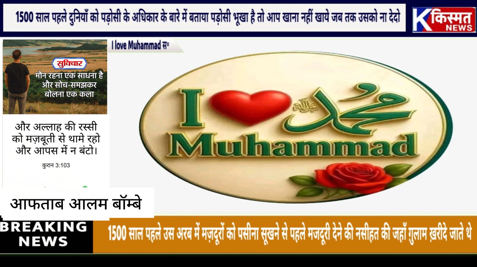 I love Muhammad स॰ क्योकि उन्होंने 1500 साल पहले उस अरब में मज़दूरों को पसीना सूखने से पहले मजदूरी देने की नसीहत की जहाँ ग़ुलाम ख़रीदे जाते थे । – किस्मत न्यूज