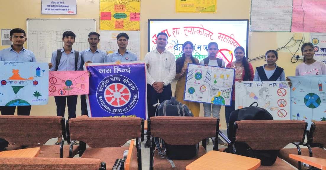 बैतूल। नशा मुक्ति अभियान के तहत जेएच कॉलेज बैतूल में राष्ट्रीय सेवा योजना इकाई द्वारा प्रश्न मंच प्रतियोगिता, रंगोली प्रतियोगिता और चित्रकला प्रतियोगिता का आयोजन किया
