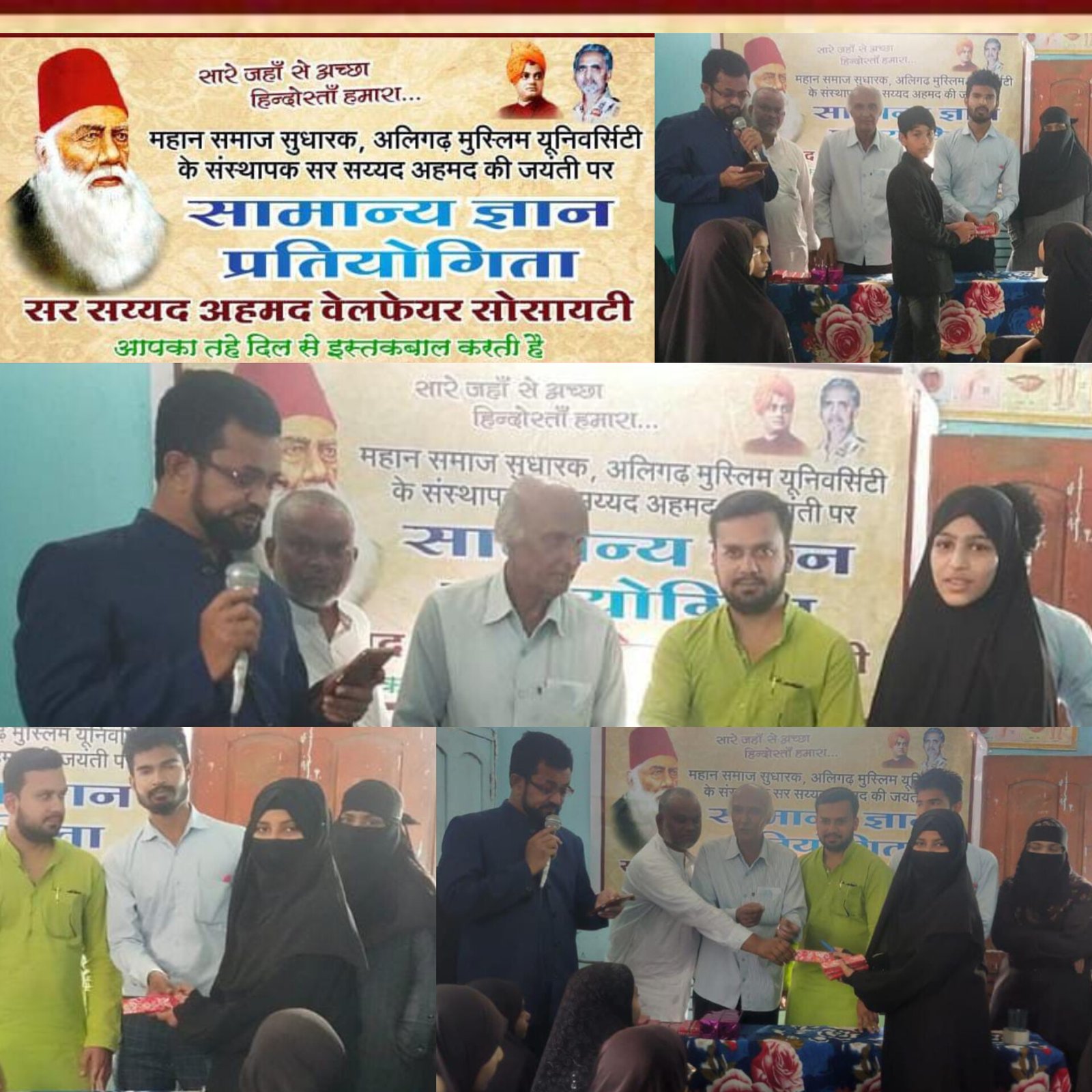 शताब्दी में जन्म लेती है.,, शिक्षाविद अर्शी शाह सर सैयद अहमद वेलफेयर सोसाइटी के अध्यक्ष पंकज जायसवाल एवं संरक्षक सैयद अबीद अली मीर ने विस्तृत जानकारी देते बताया महान समाज सुधारक ,शिक्षाविद अलीगढ़ मुस्लिम यूनिवर्सिटी के संस्थापक सर सैयद अहमद की 208 वी जयंती पर आज I.Q इंटरनेशनल स्कूल विराटनगर में सामान्य ज्ञान प्रतियोगिता का आयोजन किया गया l जिसमें छात्र-छात्राओं से शिक्षा खेल राजनीति विज्ञान एवं सामाजिक प्रश्न पूछे गए सही जवाब देने वालों को छात्र-छात्राओं को सर सैयद अहमद वेलफेयर सोसाइटी द्वारा पुरस्कृत किया गया l मुख्य अतिथि शिक्षा शिक्षाविद अर्शी शाह ने अपने मुख्य अतिथि में कहा सर सैयद अहमद का जब जन्म हुआ जब देश अंग्रेजों के अधीन था l आपने 1857 की क्रांति भी बाल अवस्था में देखी जिसमें अंग्रेजों ने क्रांतिकारी पर जुल्म और अत्याचार कर और अपने देश के कुछ लोगों की गद्दारी की वजह से वह क्रांति असफल हो गई l आपने जब भी फैसला किया था कि अंग्रेजों को हथियार से नहीं शिक्षा से ही हराया जा सकता है आपने अंग्रेजों से मुकाबले के लिए अंग्रेजी शिक्षा पर जोर दिया हम शिक्षा से ही ही अंग्रेजों से मुकाबला कर सकते हैं l आपने अलीगढ़ मुस्लिम यूनिवर्सिटी की स्थापना की आपने अलीगढ़ यूनिवर्सिटी को स्थापित करने के लिए बहुत संघर्ष किया l शिक्षा जगत में दिए गए आपके योगदान हम कभी भुला नहीं पाएंगे l समाजसेवी शाकिर शेख ने सर सैयद का स्मरण करते हुए कहा सर सैयद प्रारंभ से ही शिक्षा को प्रोत्साहित करने के लिए प्रयत्नशील रहे l आपके द्वारा स्थापित यूनिवर्सिटी ने देश को अनेक विद्वान, बैरिस्टर,डॉक्टर , एवं साहित्यकार दिए l विशेष अतिथि अधिवक्ता समीर खान ने अपने उद्बोधन में कहा l सर सैयद अहमद ने जब यूनिवर्सिटी बनाने का इरादा किया तो आपके खिलाफ खूब दुष्टप्रचार हुआ लेकिन आप अपने लक्ष्य पर अडिग रहे l और आपके द्वारा बनाई गई यूनिवर्सिटी अभी तक देश की सेवा कर रही है l संयोजक सैयद उस्मान हसन एवं संयुक्त सचिव गंगाधर महा ने बताया इस वर्ष का सर सैयद अहमद अवार्ड शिक्षाविद नसरीन अली को प्रदान किया l कार्यक्रम में शहर के प्रबुद्ध नागरिक अनुदीप गंगवार, अर्शी शाह, शबनम खान ,नाजिया परवीन ,सना मंसूरी, आसिफा खान, आदि उपस्थित थे कार्यक्रम का संचालन हाजी इकबाल हुसैन ने किया आभार स्कूल के डायरेक्टर सद्दाम हुसैन ने माना l उपरोक्त जानकारी प्रचार सचिव चेतन ठक्कर एवं सचिव धर्मेंद्र राठौर ने दी