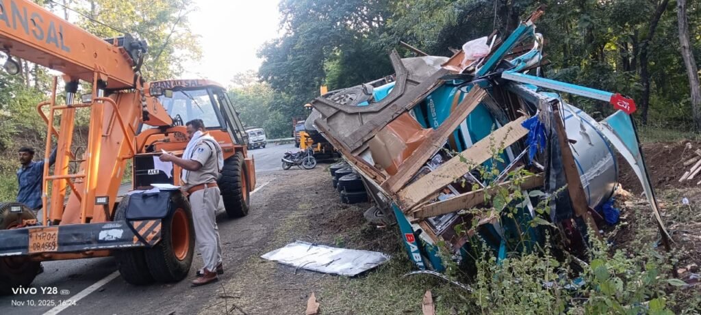 रोल रोल सेट भरी थी जो काफी वजनदार होती है ग्राम कुरसना के पास लंबी उतार में ट्रक के अंदर जो लोहे की गोल मोटी चादर थी वहां के बिन तोड़कर ड्राइवर के ऊपर जा गिरी उसके नीचे ड्राइवर दब गया बम मुश्किल ड्राइवर को जेसीपी और क्रेन की मदद से बाहर निकाल ड्राइवर पूरी तरह से दब चुका था उसके जिस्म के टुकड़े हो चुके थे।