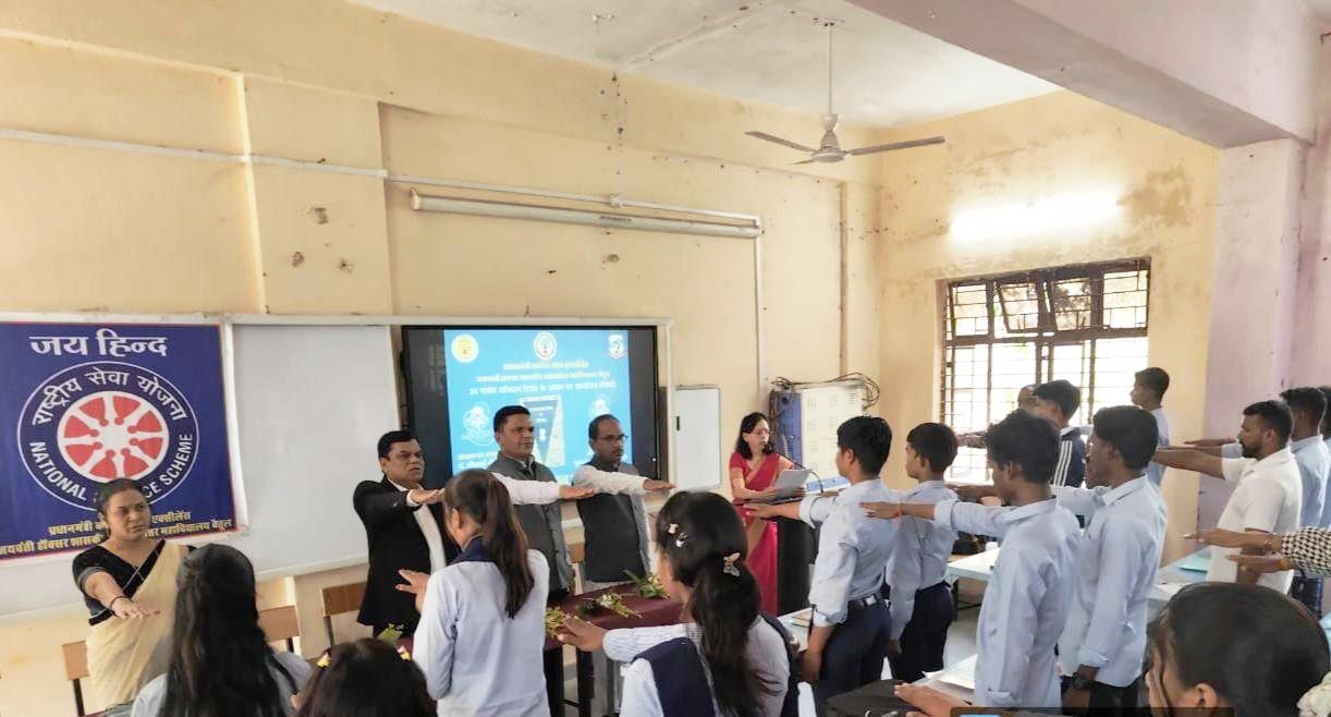 किस्मत न्यूज़ बैतूल:- प्रधानमंत्री कॉलेज ऑफ एक्सीलेंस, जेएच कॉलेज में स्थापित भारतीय ज्ञान परंपरा प्रकोष्ठ तथा राष्ट्रीय सेवा योजना के संयुक्त तत्वावधान में संविधान दिवस के अवसर पर महाविद्यालय की प्राचार्य के मार्गदर्शन में विभिन्न कार्यक्रम आयोजित किए