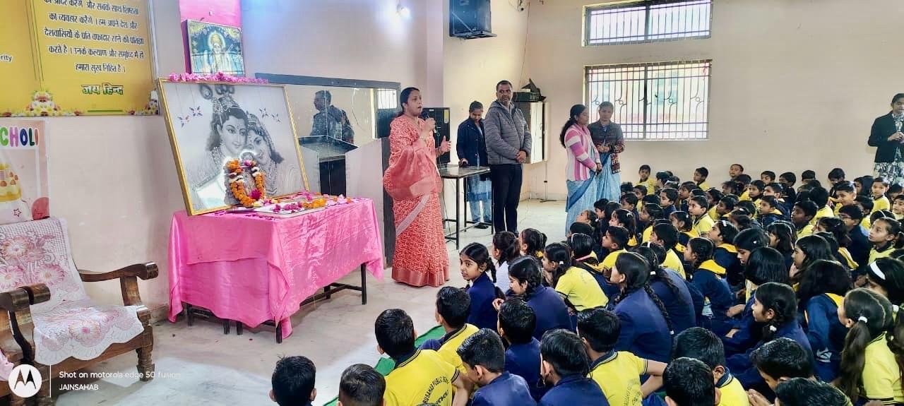कार्यक्रम की शुरुआत अत्यंत ही धार्मिक और पारंपरिक ढंग से की गई। अतिथियों और विद्यालय प्रबंधन द्वारा सर्वप्रथम भगवान श्रीकृष्ण के मनमोहक छाया चित्र पर माल्यार्पण किया गया और दीप प्रज्वलित कर विधिवत पूजा-अर्चना की गई। इस पावन अवसर ने पूरे विद्यालय परिसर में एक सकारात्मक और आध्यात्मिक माहौल निर्मित कर दिया।
