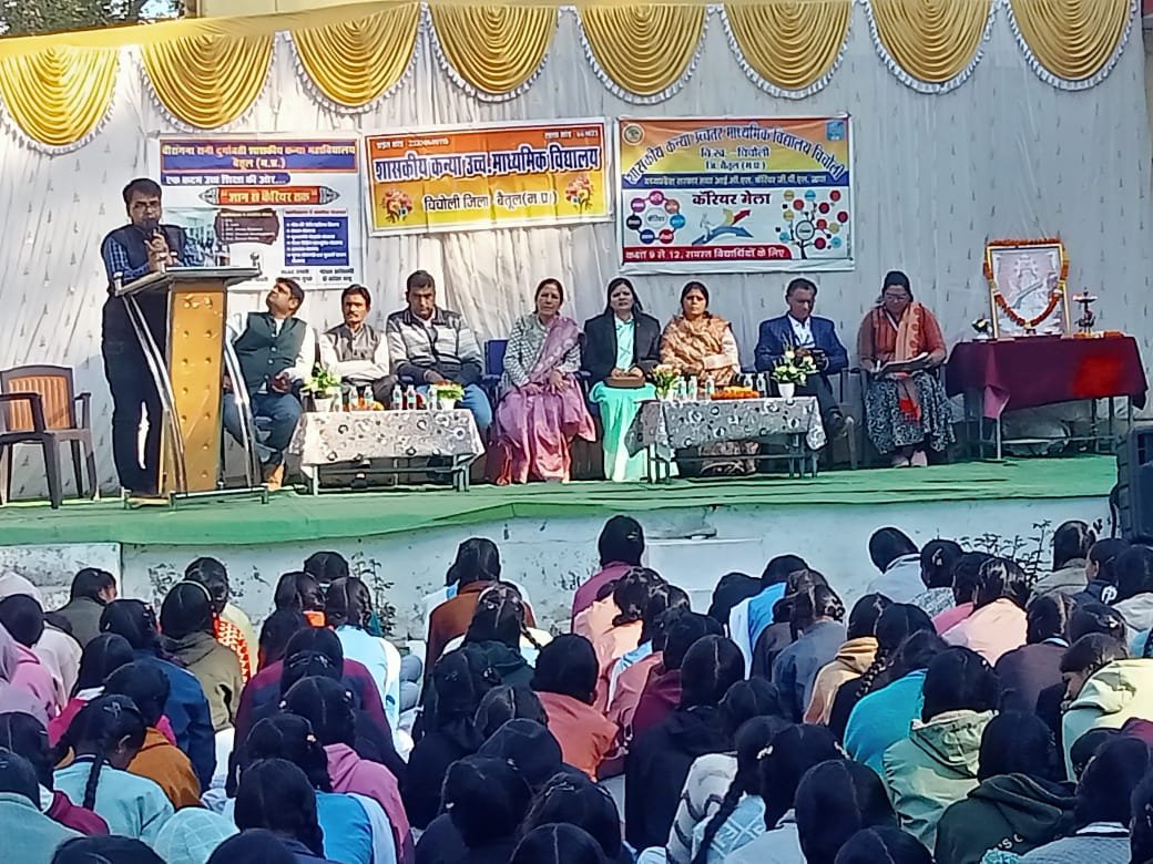 किस्मत न्यूज़ चिचोली, शासकीय कन्या शाला मे,, एक कदम उच्च शिक्षा की ओर ,, छात्रों का करीयर मेला का आयोजन हुआ अकरम खान पटेल की रिपोर्ट।   – किस्मत न्यूज