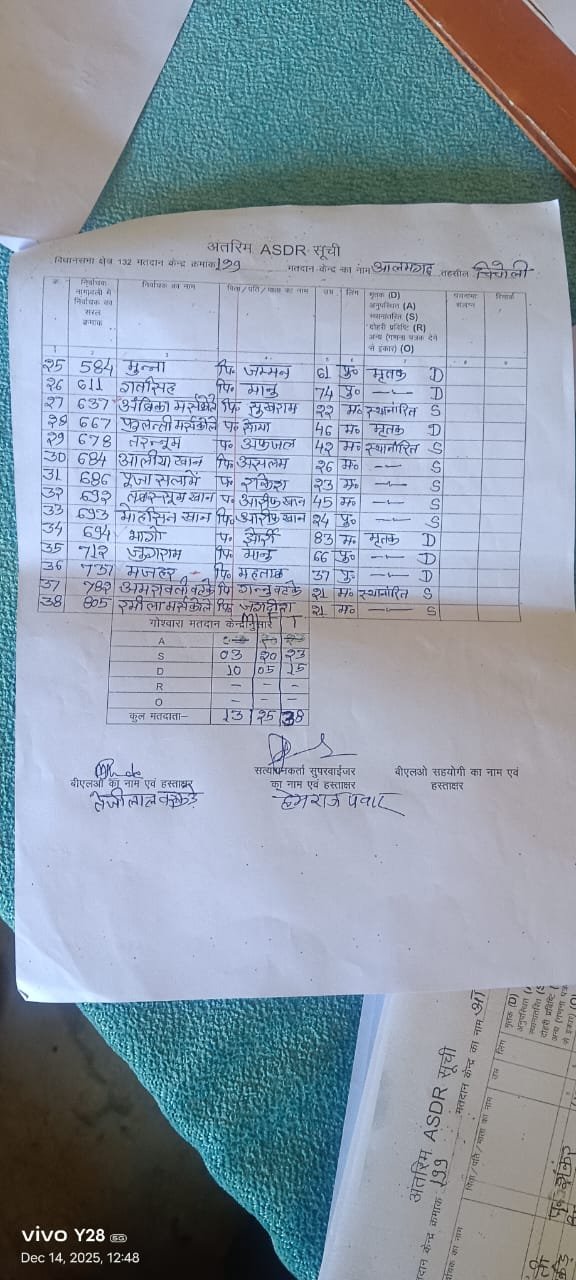 *एस आई आर के अंतर्गत मतदाता सूची का वाचन किया गया*अकरम खान पटेल की रिपोर्ट। .इसमें 17 व्यक्ति ऐसे हैं जिनकी मृत्यु हो चुकी है और 23 ऐसे व्यक्ति हैं जो यहां से स्थानांतरण हो गए हैं अर्थात कुछ लड़कियां जिनके विवाह होकर यहां से दूसरी जगह चली गई है। ऐसे कलर 30 व्यक्ति हैं जिनका आज विमोचन करना है और अगर कोई दावे अपप्ति लगता है तो वह लेना है। इस मौके में सभी राजनीतिक पार्टियों के बूथ एजेंटऔर बी एल ओ उपस्थित रहे। माध्यमिक शाला के प्रधान पाठक किशोरी लाल उईके और साला समिति के अध्यक्ष अकरम पटेल की उपस्थित रहे।