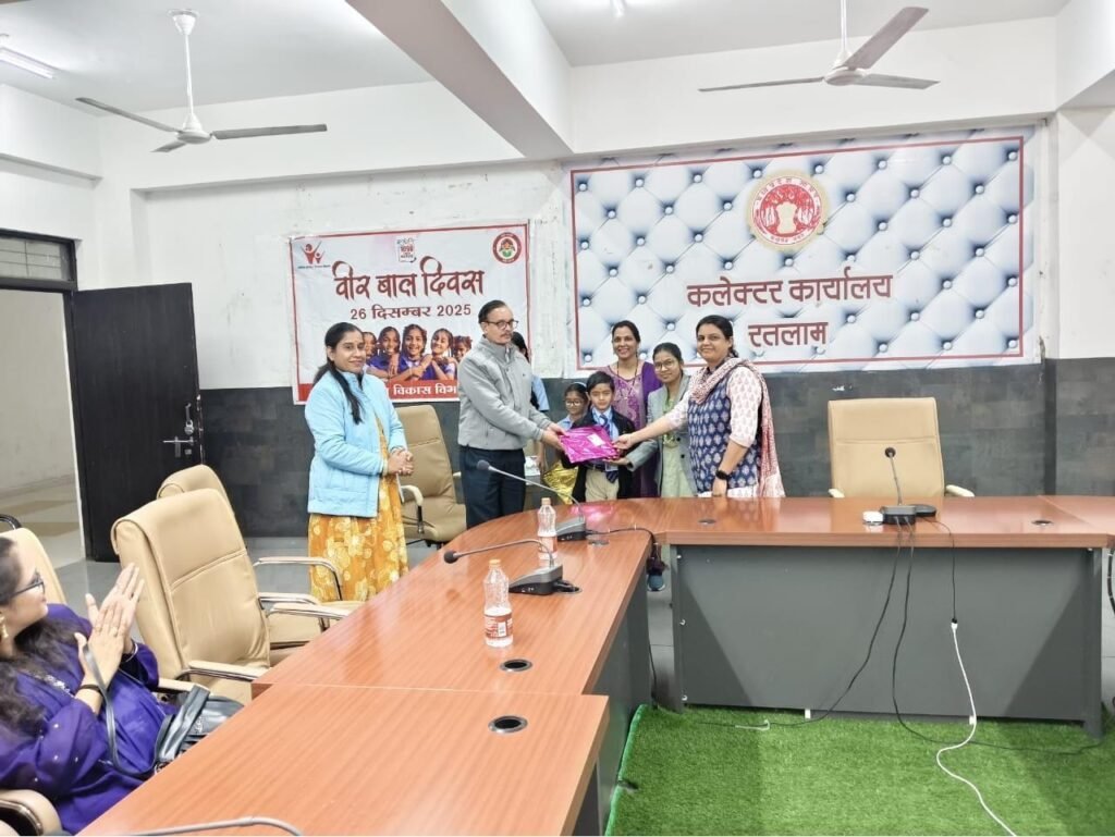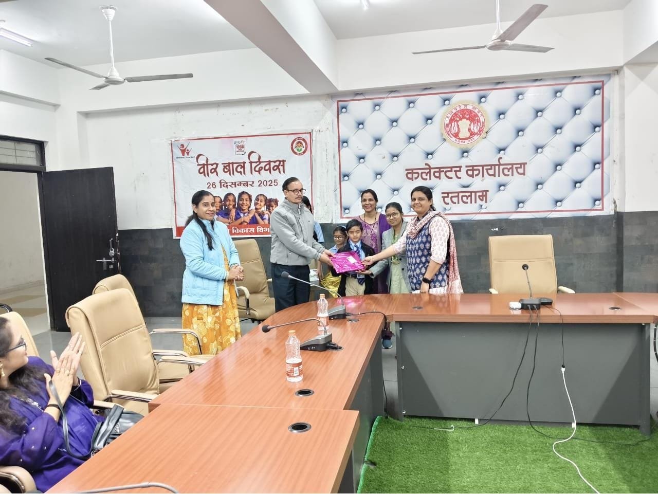 Kismat news Ratlam 26 दिसंबरजिला कार्यक्रम अधिकारी महिला एवं बाल विकास विभाग श्री रामनिवास बुधौलिया के मार्गदर्शन में कलेक्टर सभाकक्ष में वीर बाल दिवस का आयोजन किया गया। प्रधानमंत्री श्री नरेन्द्र मोदी द्वारा वीर बाल दिवस के उपलक्ष्य में दिये गये उदबोदन का लाइव टेलीकास्ट दिखाया गया। वीर बाल दिवस के अवसर पर जिले में सप्ताहिक गतिविधियो का आयोजन जिले के विद्यालयों मे किया गया। चित्रकला ड्रीम इंडिया कि थीम पर स्कूल के विद्यार्थियों द्वारा चित्रकला प्रतियोगिता में भाग लिया गया । जिस में प्रथम स्थान कामाक्षी वर्मा को द्वितीय स्थान त्रिशा शर्मा एवं तृतीय स्थान लक्ष्य ने प्राप्त किया । विजेताओ को सहायक संचालक महिला एवं बाल विकास श्री पी.सी. चौहान द्वारा पुरस्कृत किया गया। उक्त कार्यक्रम में परियोजना अधिकारी श्रीमती चेतना गेहलोत एवं अर्चना महावर,बाल सरंक्षण अधिकारी पर्यवेक्षक पवन कुवर सिसोदिया, एवं चाईल्ड लाईन स्टाफ एवं लाडली बहने और महिला बाल विकास विभाग का अमला उपस्थित था ।