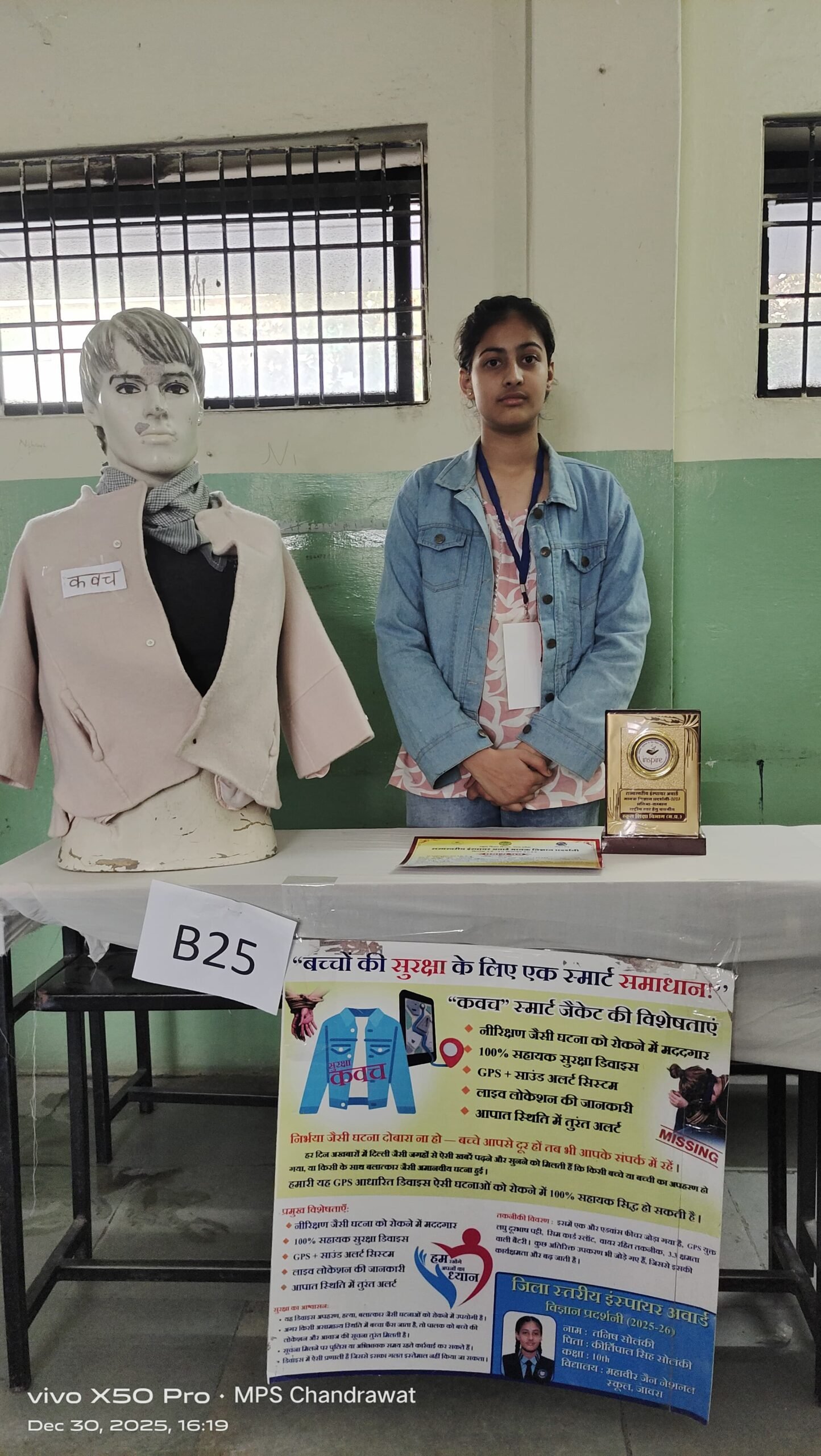 किस्मत न्यूज़ रतलाम 30 दिसंबर जिला शिक्षा अधिकारी अनीता सागर ने बताया कि महावीर जैन नेशनल स्कूल जावरा की कक्षा 10वीं की छात्रा तनीष कुंवर सोलंकी का इन्दौर में आयोजित राज्य स्तरीय इंस्पायर अवार्ड प्रदर्शनी प्रोजेक्ट प्रतियोगिता में राष्ट्रीय स्तर के लिए चयन हुआ है। राज्य स्तरीय इंस्पायर प्रदर्शनी में 55 जिलों के लगभग 250 विद्यार्थियों ने सहभागिता की। रतलाम जिले से सत्र 2023-24 एवं 2024-25 के 15 प्रतिभागियों ने इसमें सहभागिता की। तनीष कुंवर का मॉडल महिलाओं की सुरक्षा के लिए जैकेट से संबंधित है जिसे पहनकर कोई लड़की या महिला अकेले कहीं बाहर जाती है और उसके साथ छेड़छाड़ होती है तो तुरंत पेरेंट्स को सूचना मिल जाती है तथा लोकेशन भी सेंड हो जाती है।