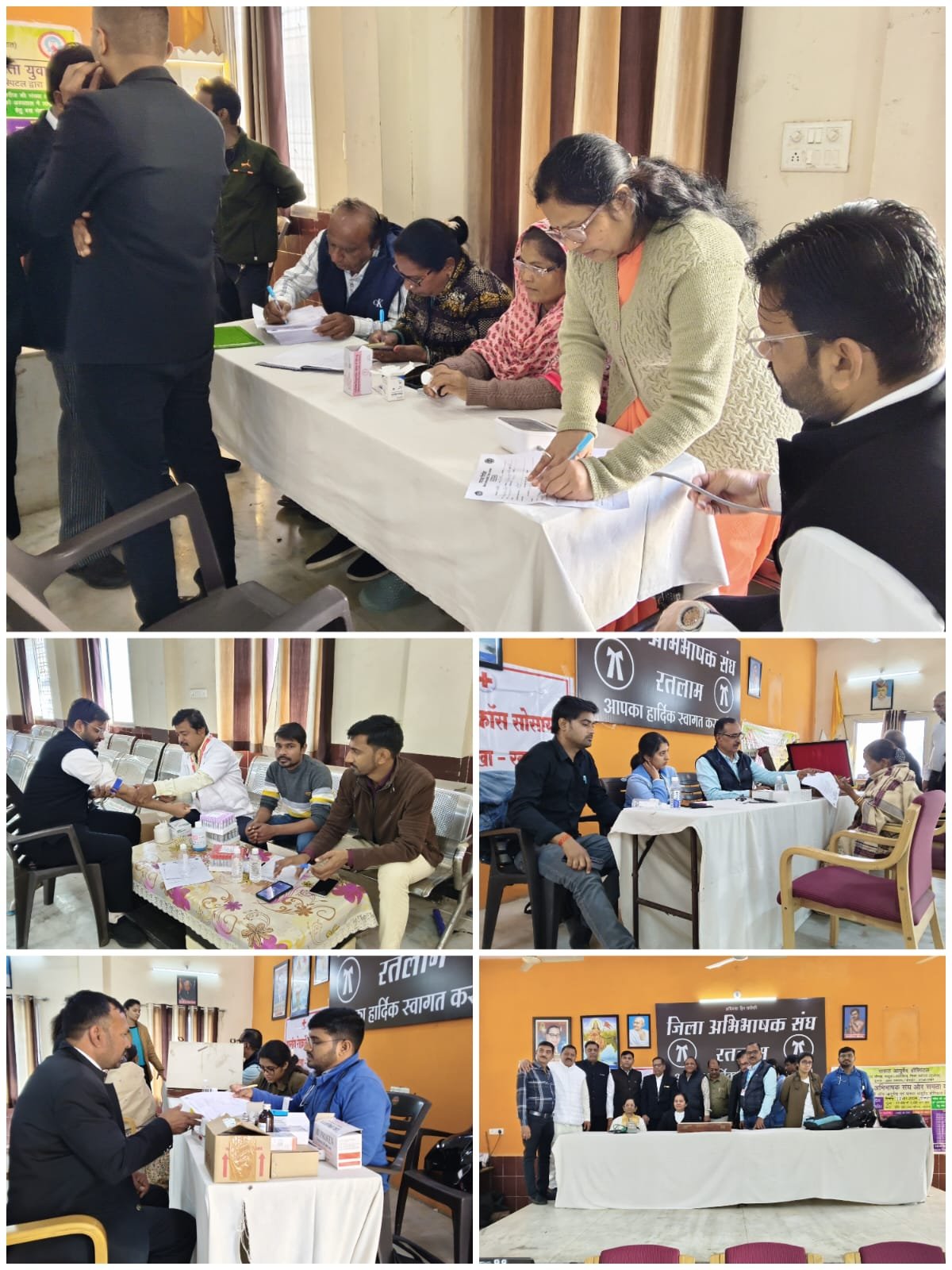 रतलाम जिला न्यायालय रतलाम परिसर में भारतीय रेडक्रॉस सोसायटी जिला रतलाम द्वारा सेवा सप्ताह के दौरान मुख्य चिकित्सा एवं स्वास्थ्य अधिकारी श्रीमती संध्या बेलसरे के निर्देशानुसार जिला अभिभाषक संघ रतलाम पर जिला एवं सत्र न्यायाधीश रतलाम सुश्री नीना आशापूरे, अतिरिक्त जिला न्यायाधीश श्री आशीष श्रीवास्तव, सीजे श्री अनुपम तिवारी, अध्यक्ष अभिभाषक संघ श्री राकेश शर्मा, रेडक्रॉस चेयरमैन श्री प्रीतेश गादिया की उपस्थिति में जिला अभिभाषक व आगंतुकों का स्वास्थ्य परीक्षण आयोजन किया गया।
