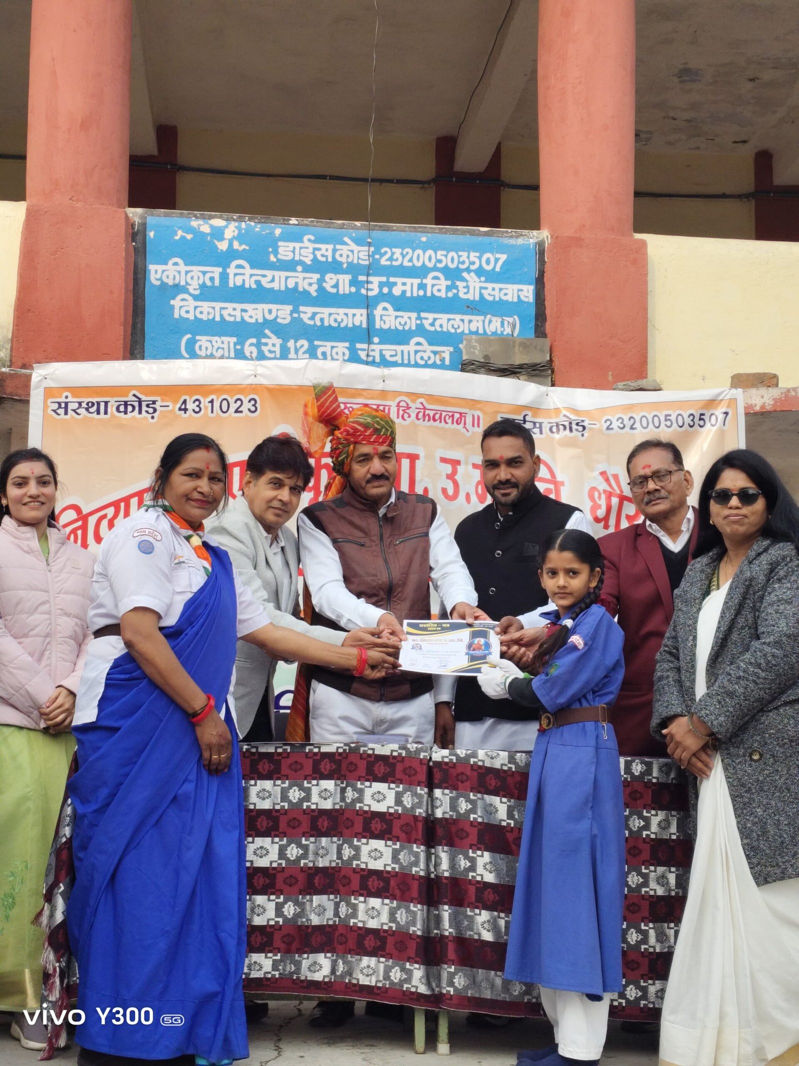 कार्यक्रम में मुख्य अतिथि ग्राम पंचायत के सरपंच अनिल पाटीदार एवं उप सरपंच की उपस्थिति में गाइड की छात्राओं ने शानदार प्रदर्शन करते हुए परेड की ओर अतिथियों का सम्मान गाइड की परम्परा अनुसार किया