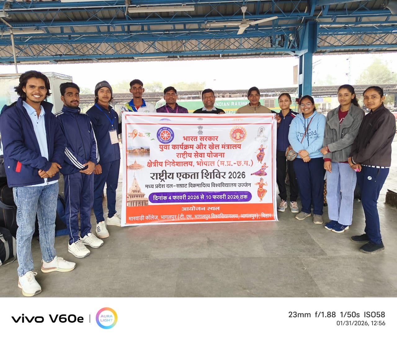 किस्मत न्यूज़ उज्जैन.सम्राट् विक्रमादित्य विश्वविद्यालय, उज्जैन परिक्षेत्र के राष्ट्रीय सेवा योजना (NSS) का चयनित दल आज राष्ट्रीय एकता शिविर (NIC) में सहभागिता हेतु अपने गंतव्य के लिए आज रवाना हो गया है। यह राष्ट्रीय स्तर का शिविर दिनांक 04 फरवरी 2026 से 10 फरवरी 2026 तक मारवाड़ी कॉलेज, भागलपुर, बिहार में आयोजित किया जा रहा है।