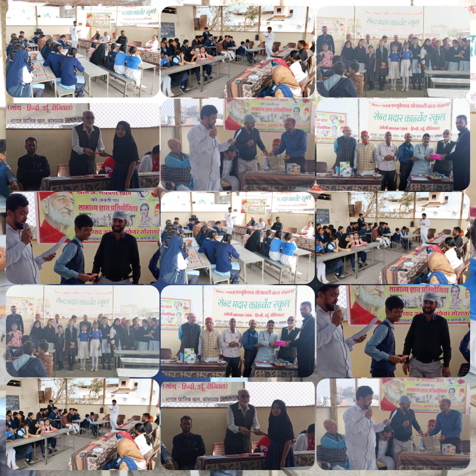 Kismat news Ujjain. सर सैयद अहमद वेलफेयर सोसाइटी के अध्यक्ष पंकज जायसवाल एवं संरक्षक सैयद अबीद अली मीर ने विस्तृत जानकारी देते बताया आज भारत रत्न खान अब्दुल गफ्फार खान सीमांत गांधी की 136वीं जयंती के अवसर पर सेंट मदार कान्वेंट स्कूल में सामान्य ज्ञान प्रतियोगिता का आयोजन किया गया अतिथि के तौर पर नई पहल के अध्यक्ष शकेब कुरैशी, शिक्षाविद रीना तिवारी, ऐच्छिक सेवानिवृत्त एस. आई मोहम्मद जहीर, मध्य प्रदेश हज कमेटी के पूर्व सदस्य हाजी इकबाल हुसैन, प्राचार्य दरकक्षा खान ने प्रतियोगिता में सही उत्तर देने वाले छात्र-छात्राओं को पुरस्कार प्रदान किये। अतिथि शकेब कुरैशी ने अपने उद्बोधन में कहा बादशाह खान का पूरा जीवन देश की आजादी के लिए समर्पित रहा अपने राष्ट्रपिता महात्मा गांधी , सरदार वल्लभभाई पटेल, पंडित जवाहरलाल नेहरू, मौलाना अबुल कलाम आजाद, नेताजी सुभाष चंद्र बोस,राजेंद्र प्रसाद के साथ कंधे से कंधा मिलाकर स्वतंत्रता आंदोलन में अग्रणी भूमि का निभाई । कार्यक्रम के अध्यक्षता करते हुए शहजाद खान पप्पू भाई ने अपने अध्यक्षीय उद्बोधन में सीमांत गांधी का स्मरण करते हुए कहा सीमांत गांधी देश की स्वतंत्रता के लिए अनेक बार जेल गए आप सभी स्वतंत्रता आंदोलन में शामिल रहे आपका संपूर्ण जीवन देश के लिए समर्पित रहा आप देश के विभाजन के खिलाफ थे ।आपको देश का सर्वोच्च सम्मान भारत रत्न प्रदान किया गया ऐसे महान व्यक्तित्व सदीयो में बिरले जन्म लेते हैं आपका योगदान को भारत और यह विश्व कभी नहीं पाएगा आपको नोबेल शांति पुरस्कार के लिए भी दो बार नामित किया गया । इस वर्ष का खान अब्दुल गफ्फार खान अवार्ड शहर की दो शख्सियतो को सम्मानित किया गया समाजसेवी इरशाद कुरैशी एवं एडवोकेट जाहिद नूर को इस वर्ष का सीमांत गांधी अवार्ड प्रदान किया गया । कार्यक्रम में शहर के प्रबुद्ध नागरिक शकील अहमद बादशाह भाई नाजिया, अहमद शिरीन खान, उस्मान मुल्तानी ,अब्दुल खालिक अनीस अहमद, आदि उपस्थित थे कार्यक्रम का संचालन इकबाल उस्मानी ने किया आभार नासिर मंसूरी ने माना। उपरोक्त जानकारी प्रचार सचिव चेतन ठक्कर एवं सैयद आशिक अली ने दी