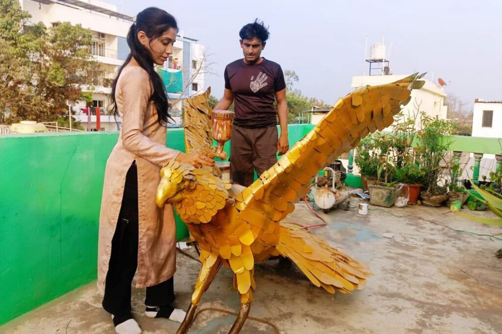 बैतूल*लगभग 2000 लोहे के टुकड़ों से साकार हुआ गरुड़* *युवा चित्रकार व कला गुरु श्रेणिक और शिष्या उमा की अनूठी पहल* अकरम खान पटेल की रिपोर्ट।