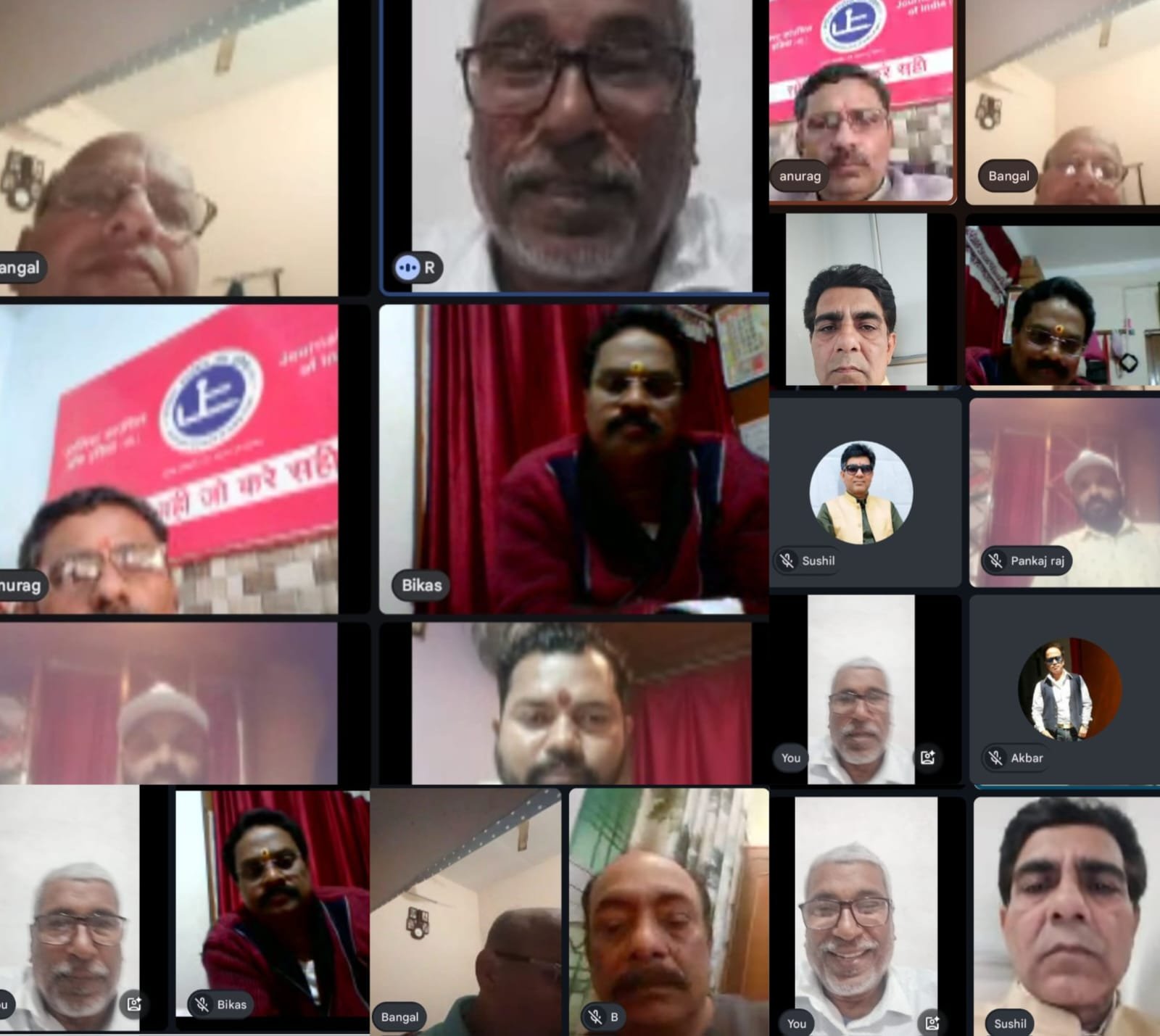 जर्नलिस्ट काउंसिल ऑफ इंडिया की एक महत्वपूर्ण वर्चुअल बैठक पत्रकारिता के दौरान आने वाली दिक्कतों और वर्तमान परिदृश्य पर चर्चा हेतु आयोजित की गई। बैठक संस्था के राष्ट्रीय अध्यक्ष डाॅ. अनुराग सक्सेना की अध्यक्षता में संपन्न हुई, जिसमें देशभर से लगभग पचास पदाधिकारियों ने सहभागिता कर अपने विचार व्यक्त किए।
