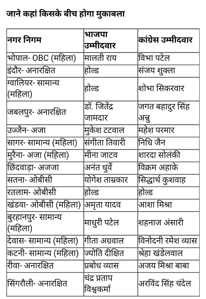 इंदौर 🌹 *भाजपा के महापौर प्रत्याशी पुष्यमित्र भार्गव बने* ।🌹*नगरीय निकाय चुनाव में अब तक कांग्रेस भाजपा की जो स्थिति महापौर प्रत्याशियों को लेकर हुई वो ये है आमने- सामने👇🏻* – किस्मत न्यूज