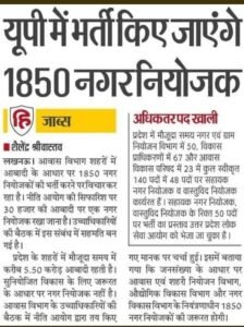उत्तर प्रदेश में भर्ती किए जाएंगे 1,850 नगर नियोजक