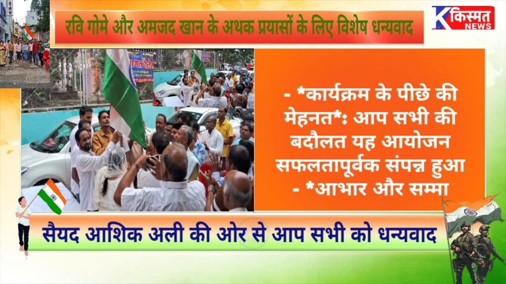 आभार संदेश - "आजादी के जश्न में सफल आयोजन के लिए मैं आप सभी का दिल से आभार व्यक्त करता...