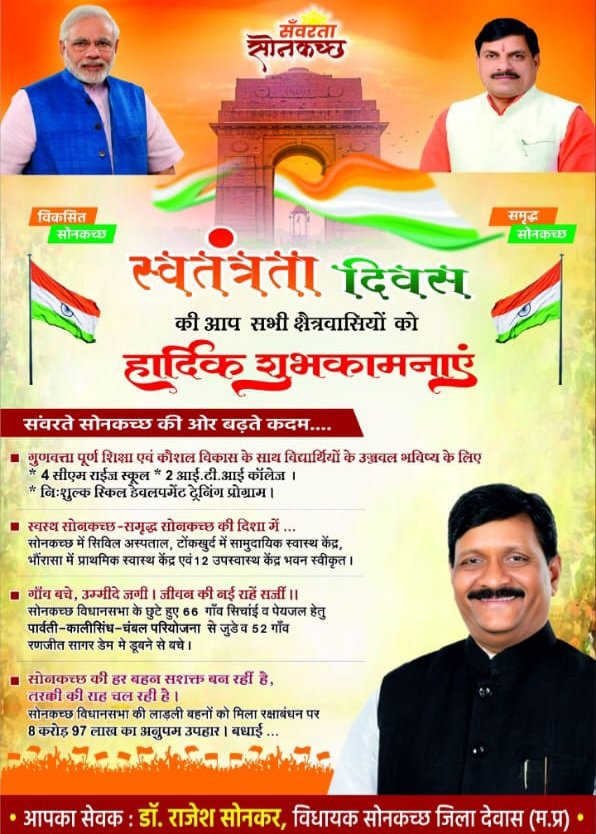 संवर्ता सोनकच्छ विकसित सोनकच्छ | समृद्ध सोनकच्छ --- स्वतंत्रता दिवस की आप सभी क्षेत्रवासियों को हार्दिक शुभकामनाएं...
