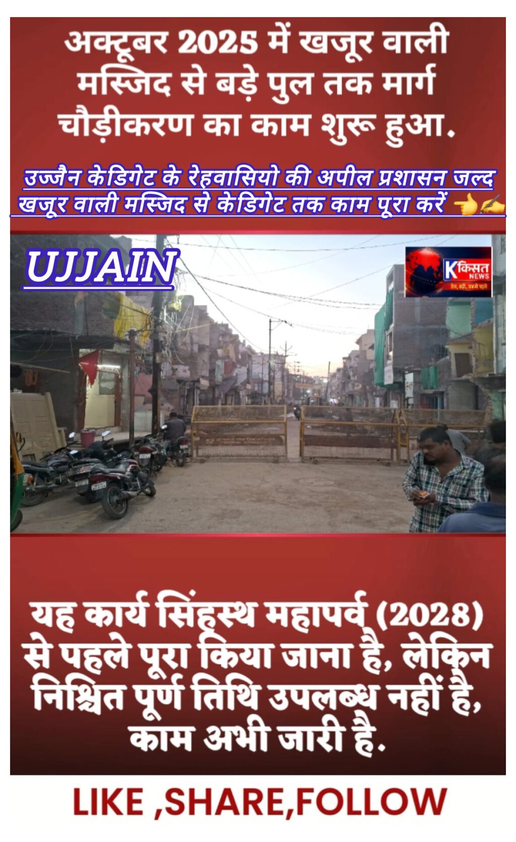किस्मत न्यूज़ उज्जैन,यह कार्य सिंहस्थ महापर्व (2028) से पहले पूरा किया जाना है, लेकिन निश्चित पूर्ण तिथि हमारे पास उपलब्ध...